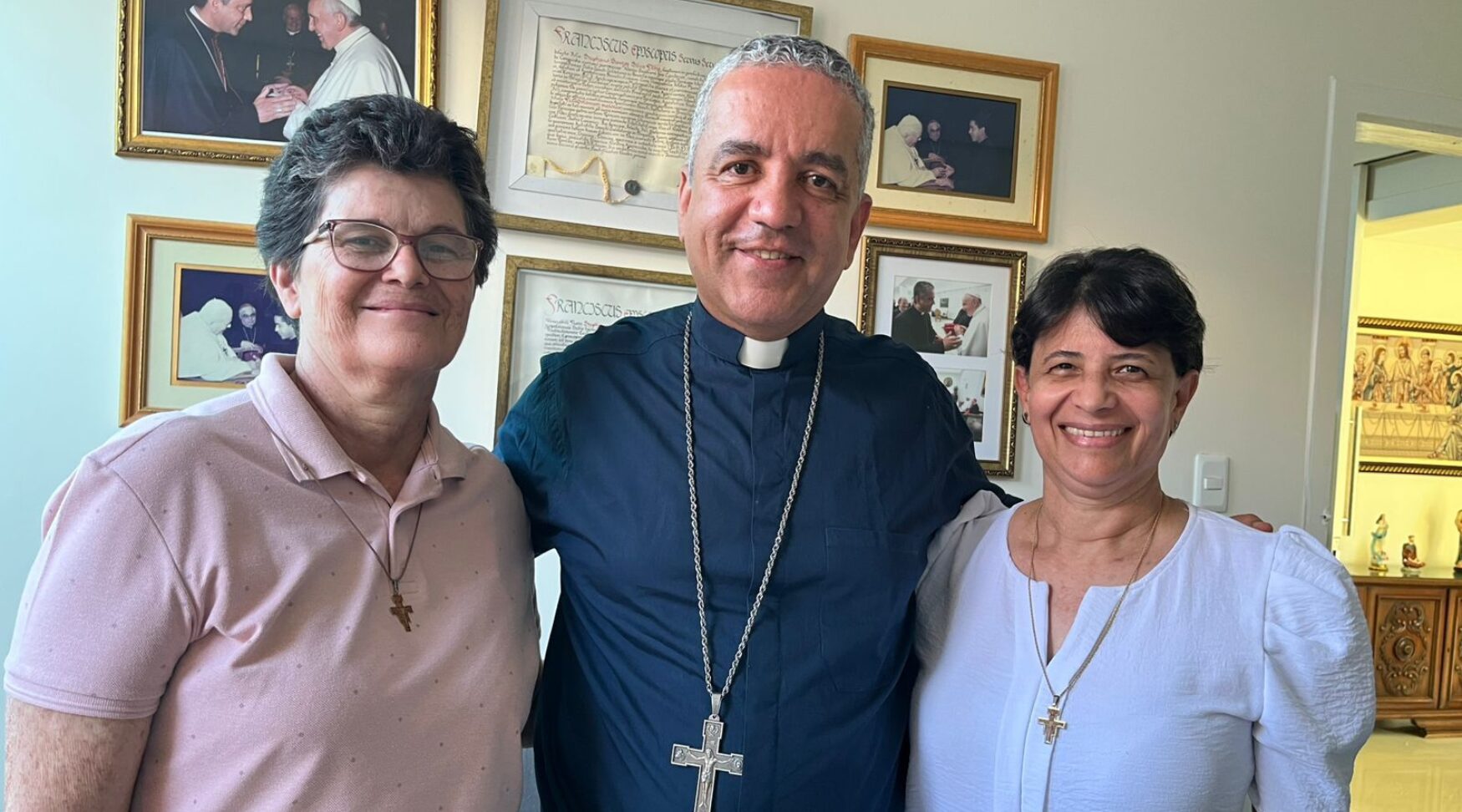 Em visita à Diocese de Ruy Barbosa, Ministra Regional das Irmãs Franciscana de Allegany dialoga com o bispo sobre a missão em Macajuba