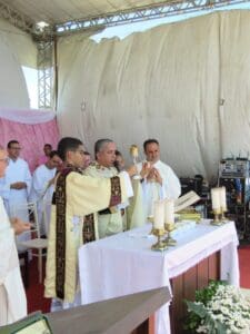 A celebração Eucarística, ponto alto da Romaria, foi presidida pelo bispo diocesano Dom Estevam dos Santos Silva Filho. Em sua homilia, Dom Estevam ressaltou a importância da Romaria Marial para a missão da paróquia e destacou o papel fundamental da fé e da devoção na vida dos paroquianos. Aproveitando a ocasião, o bispo convidou a todos para o lançamento do ano jubilar em 2025, quando a Paróquia Senhora Sant’Ana completará 250 anos de criação, um marco significativo para toda a comunidade.