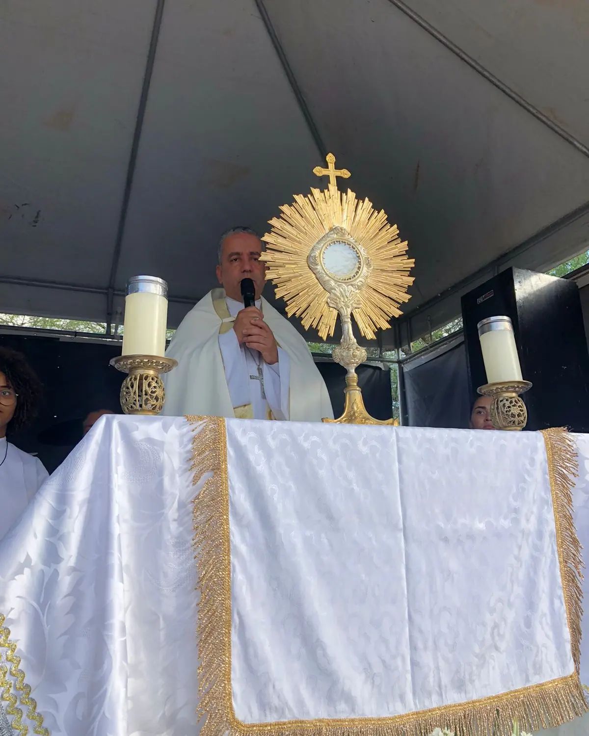 Em seguida, Pe. Cláudio Gonçalves e o Ministério Arcos de Fé promoveram um show musical, conduzindo pessoas de todas as idades.
