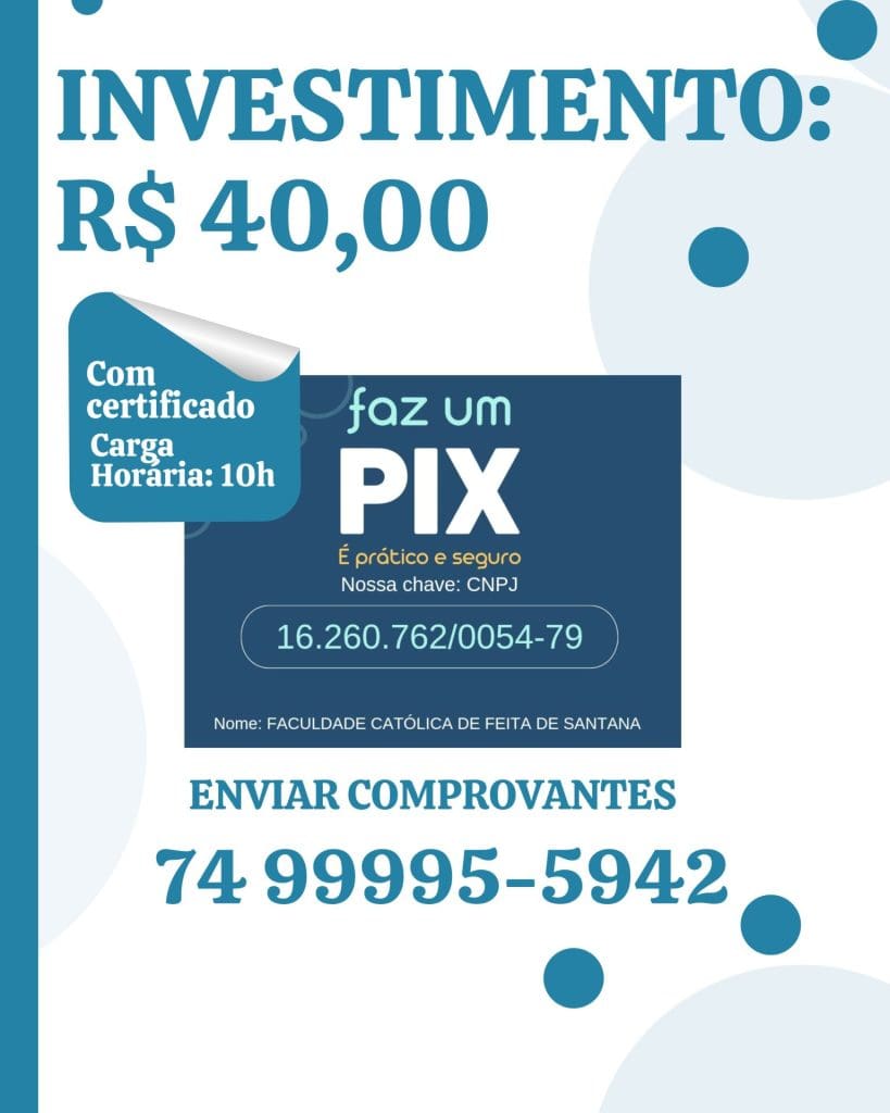 Para confirmar a inscrição realize o pagamento e envie o comprovante para o número de WhatsApp.