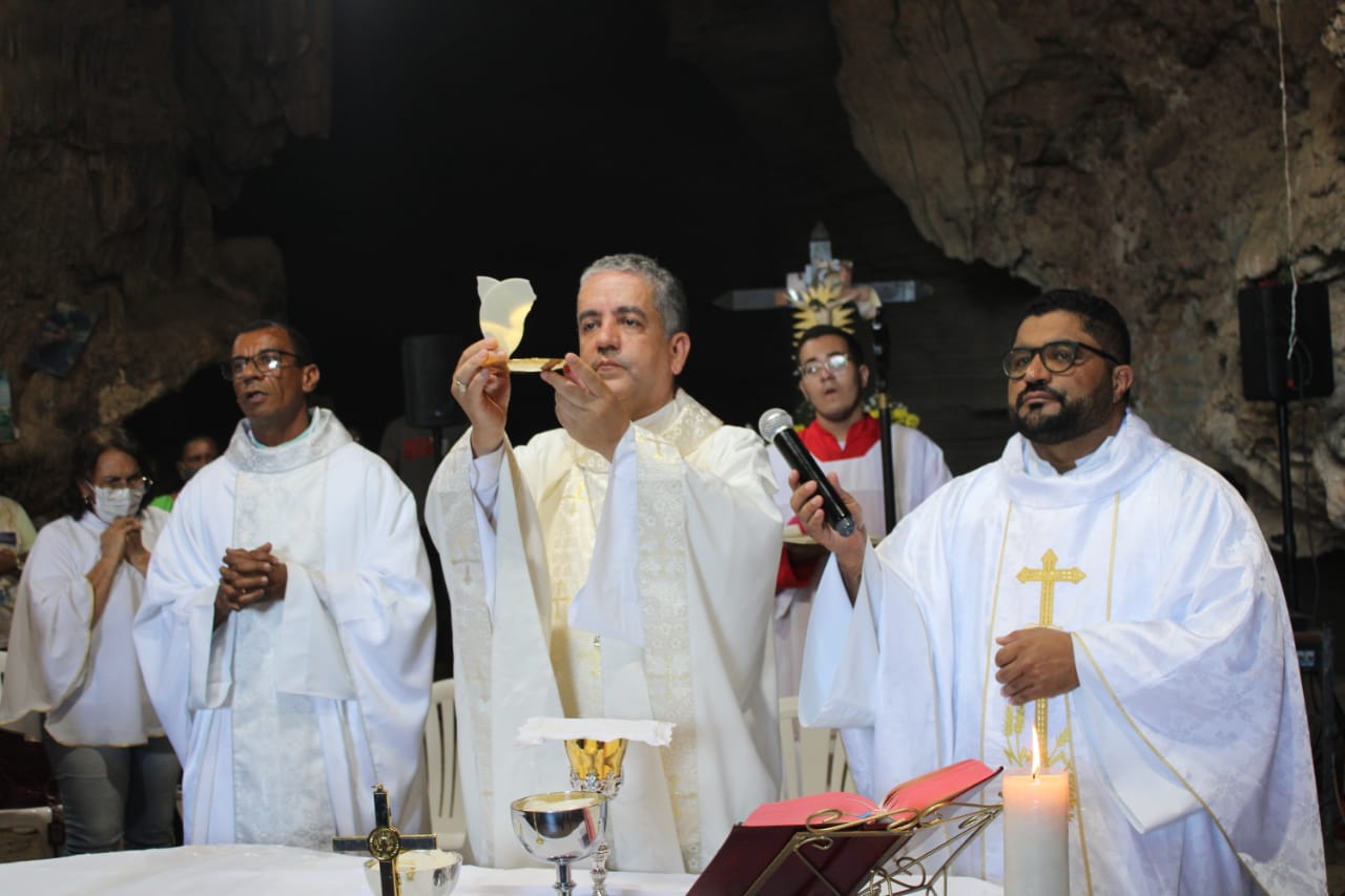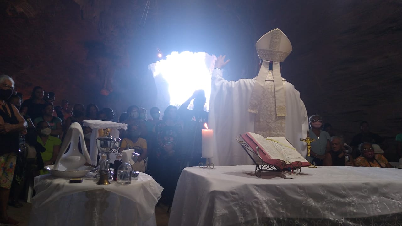 Este ano, a missa festiva foi celebrada pelo bispo diocesano, Dom Estevam dos Santos Silva Filho, que ficou muito emocionado por conhecer a Gruta da Lapinha, um lugar muito parecido com a Lapa do Senhor Bom Jesus, grande e bela.