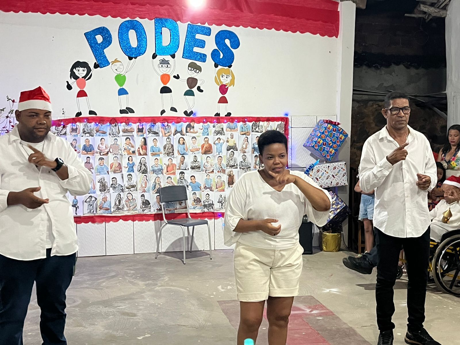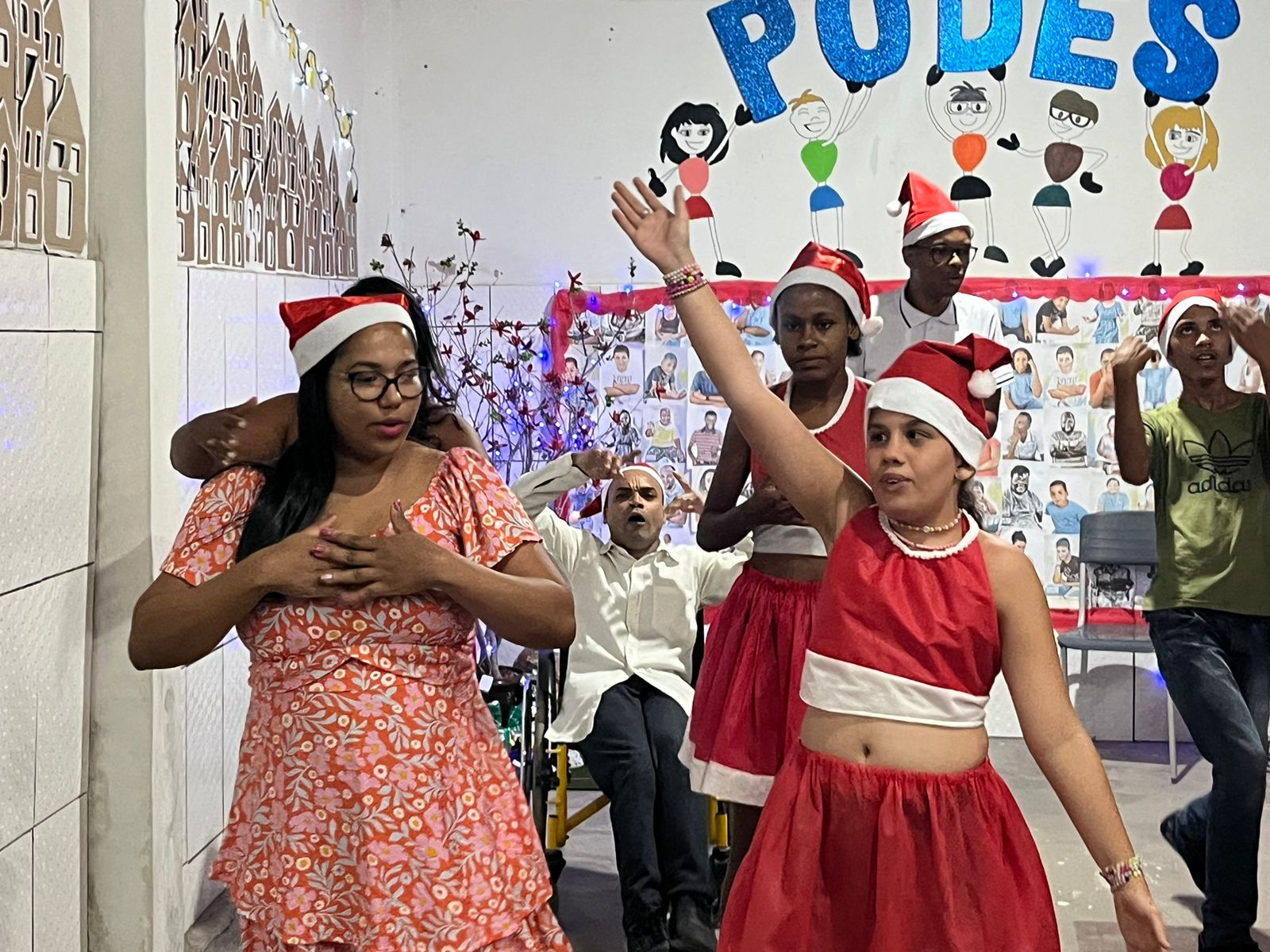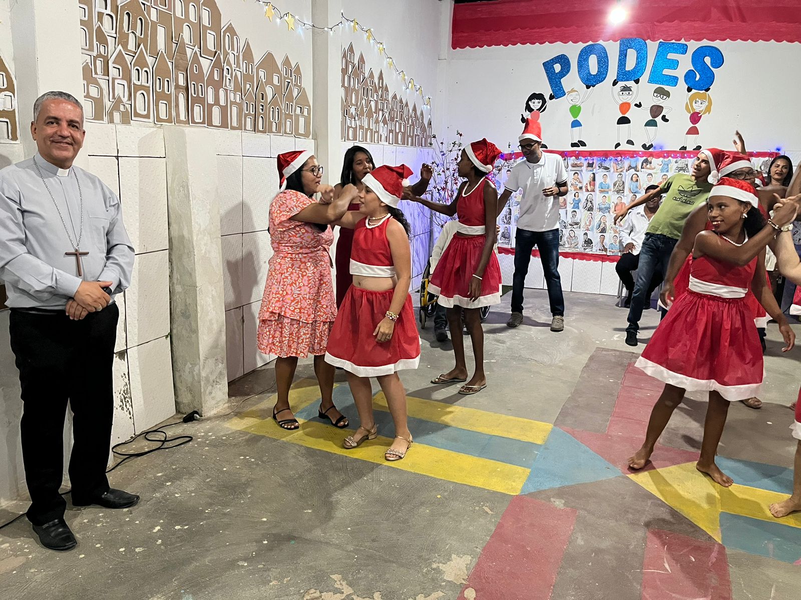 Confraternização de Natal da PODES (Pastoral dos Portadores de Direitos Especiais), com muita alegria o bispo diocesano, Dom Estevam, e o padre Carlos Marçal estiveram presentes