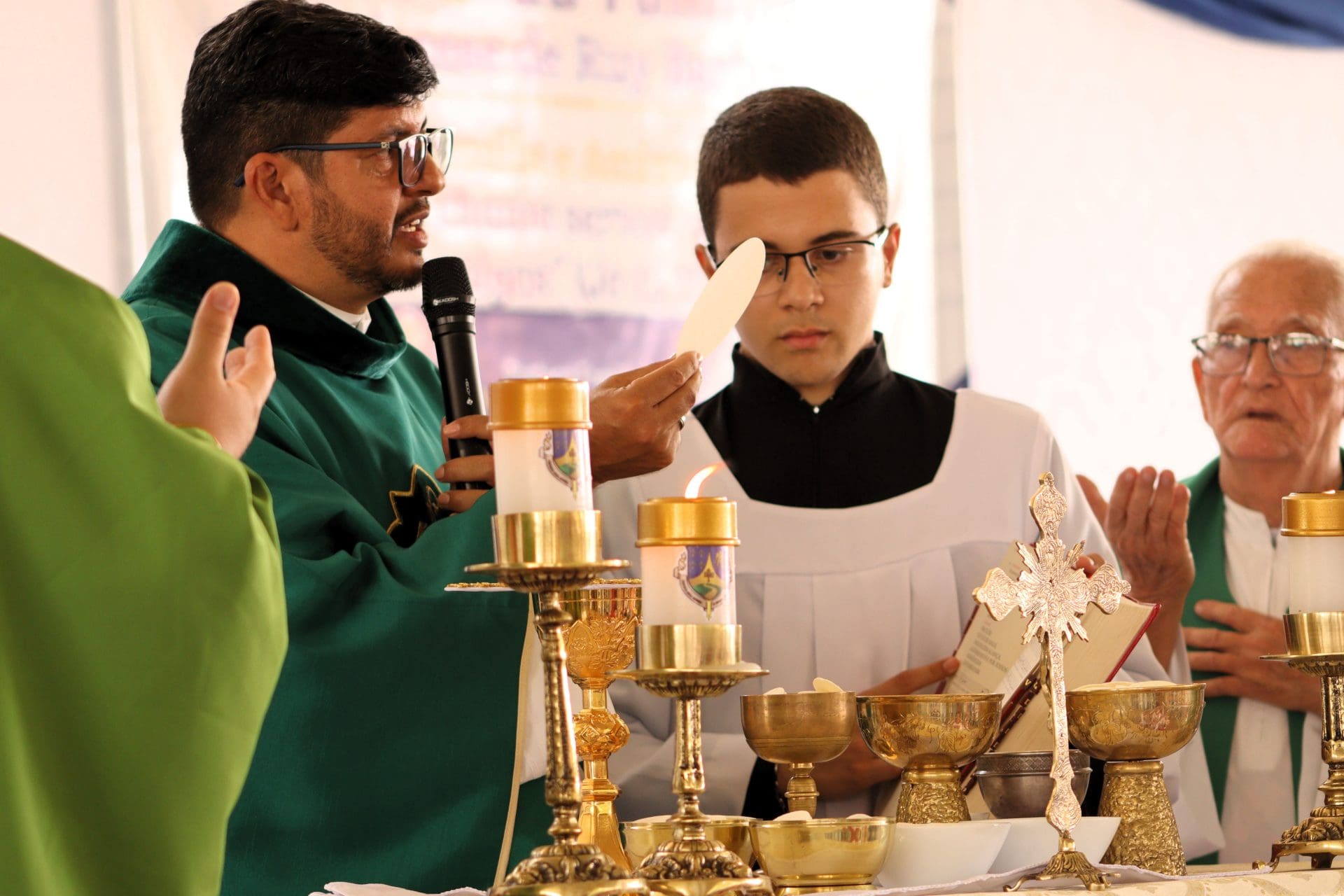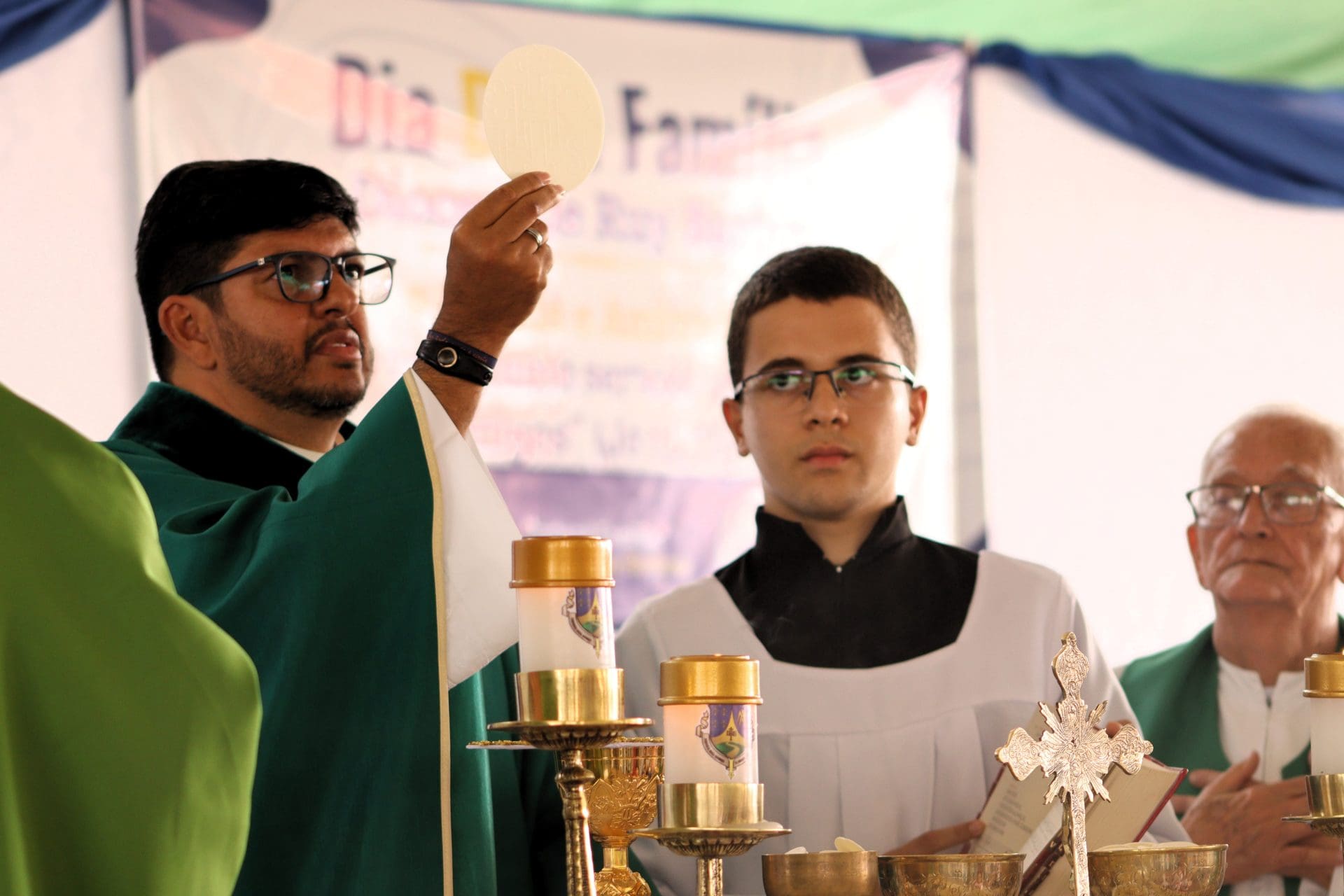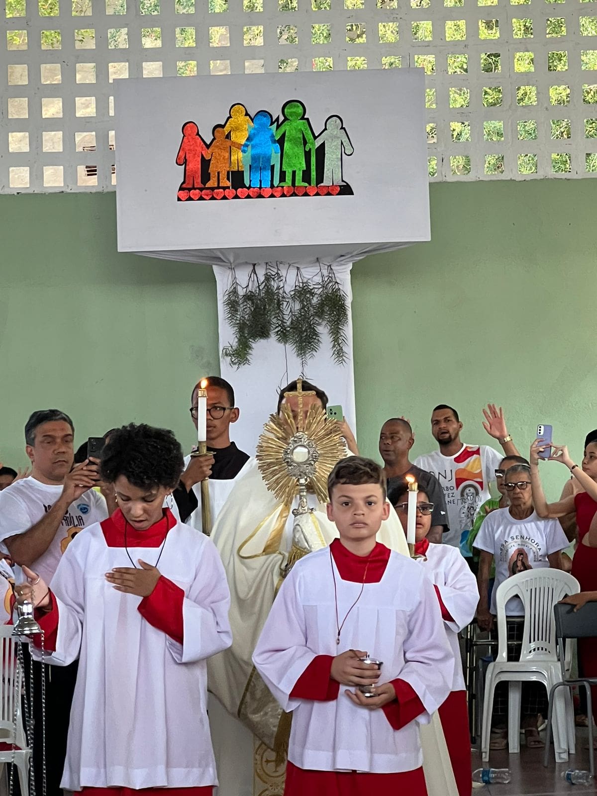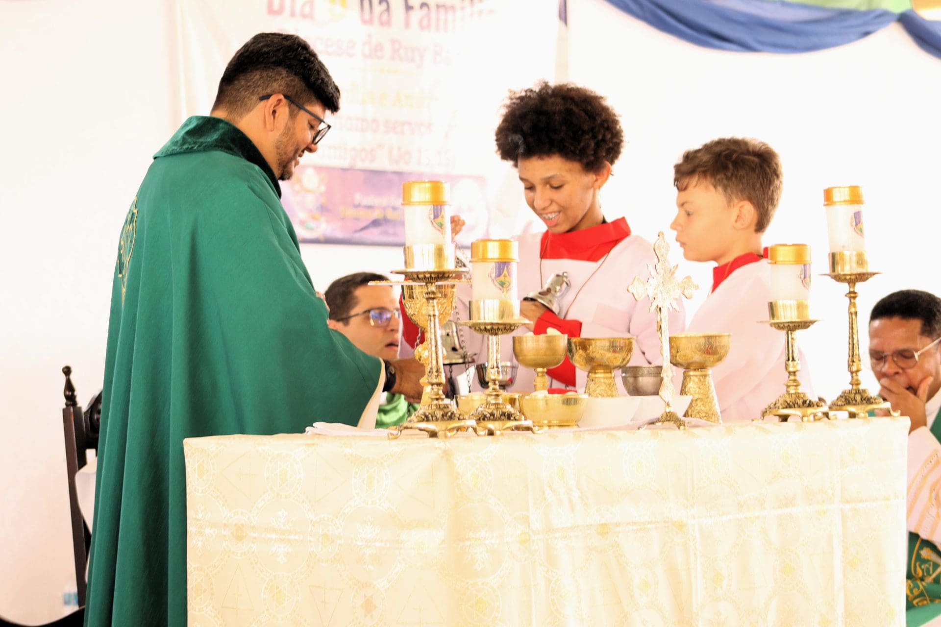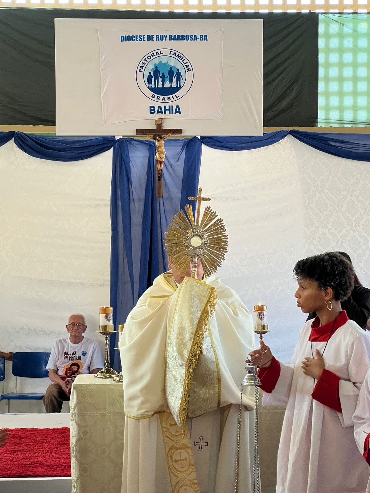 Após a acolhida e café comunitário, todos seguiram em uma animada caminhada até o Colégio Adenias Rodrigues da Silva onde prosseguiu a programação. Seguindo a programação do Dia D da Família, aconteceu a Santa Missa presidida pelo Pe. Antônio Carlos Fontenelle, assessor eclesiástico da Pastoral Familiar na Diocese de Ruy Barbosa, e concelebrada pelos padres Fred Figueiredo, Cláudio Gonçalves, Ailton Bispo e Monsenhor Edival Monteiro. O Evento teve a presença de famílias de toda a diocese, que vinham rezar pela vocação familiar.