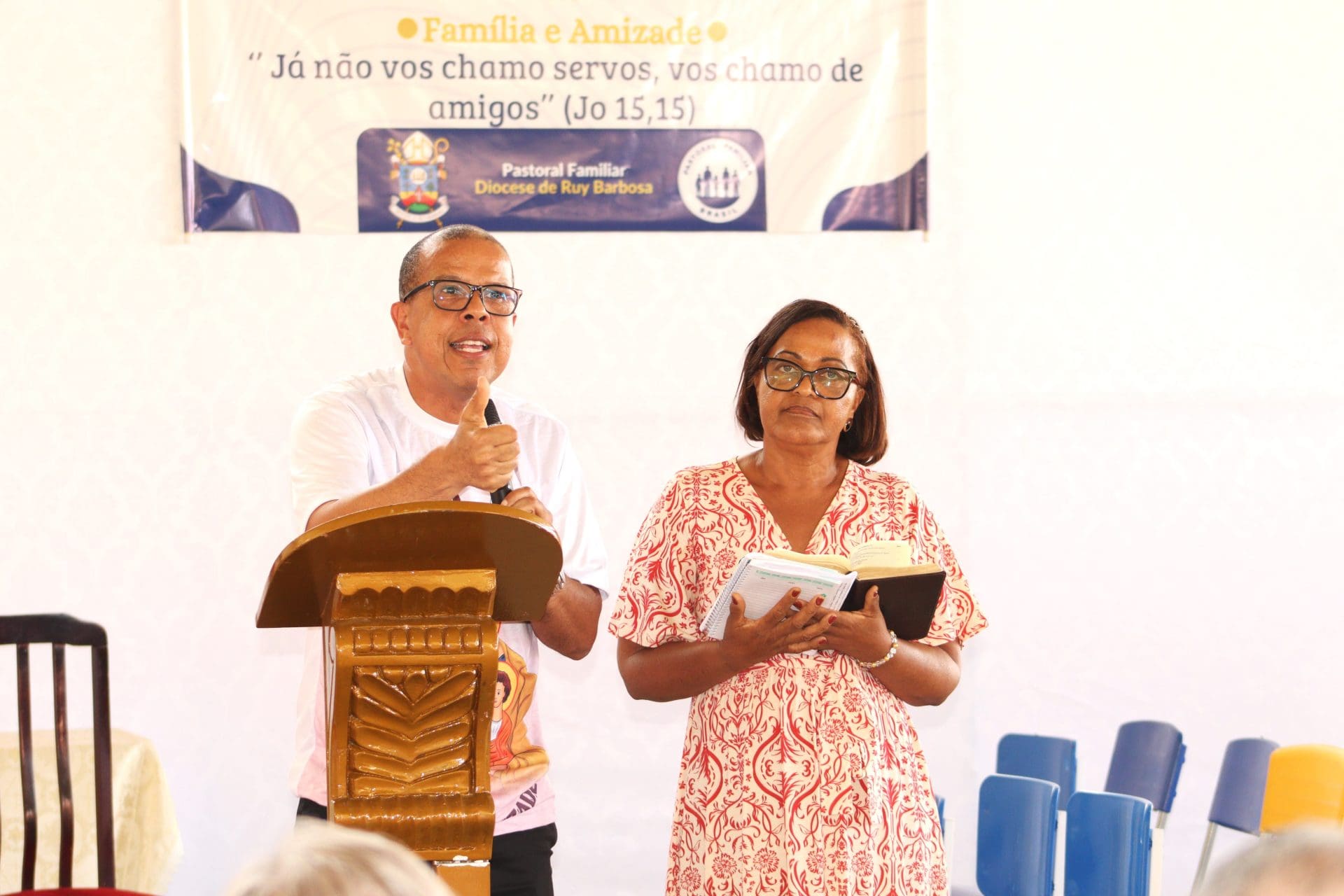 Família e Amizade “já não vos chamo servo, vos chamo de amigos” ( Jo 15,15) foi o tema da palestra do Dia D da Família, conduzida pelo palestrante Diácono Renato e Nailde da comunidade ANAWIN. Os palestrantes explicaram o tema trazendo a importância de procurar entender a proposta de Deus na nossa vida, enquanto família. Uma amizade que requer manutenção, que inicia com Jesus, que se apoia nas escrituras.