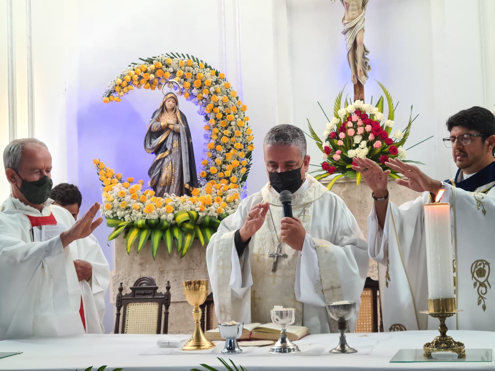 A Missa Solene foi presidida pelo reverendíssimo bispo diocesano,  Dom Estevam dos Santos Silva Filho,  que em sua homilia  lembrou que Jesus, em sua crucificação,  deu Maria Santíssima como mãe e cuidadora, pois ele não queria que caminhássemos sozinhos. Alertou que em meio às tantas dores e sofrimentos devemos aprender com Maria, a sermos um instrumento de paz e obediência a Cristo no acolhimento de quem chega, amando a todos e servindo quem precisa.
