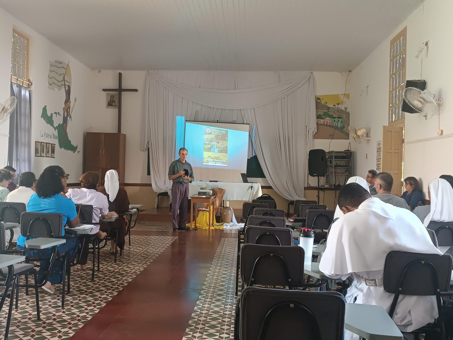 O Coordenador de Pastoral, Padre Carlos Marçal, conduz o encontro com a colaboração do padre Mário de Carli, que em sua fala fez uma explanação do Plano Pastoral trazendo os pilares da ação evangelizadora: Pilar da Palavra, Pilar da Missão, Pilar da Caridade, Pilar da Juventude e Vocação.