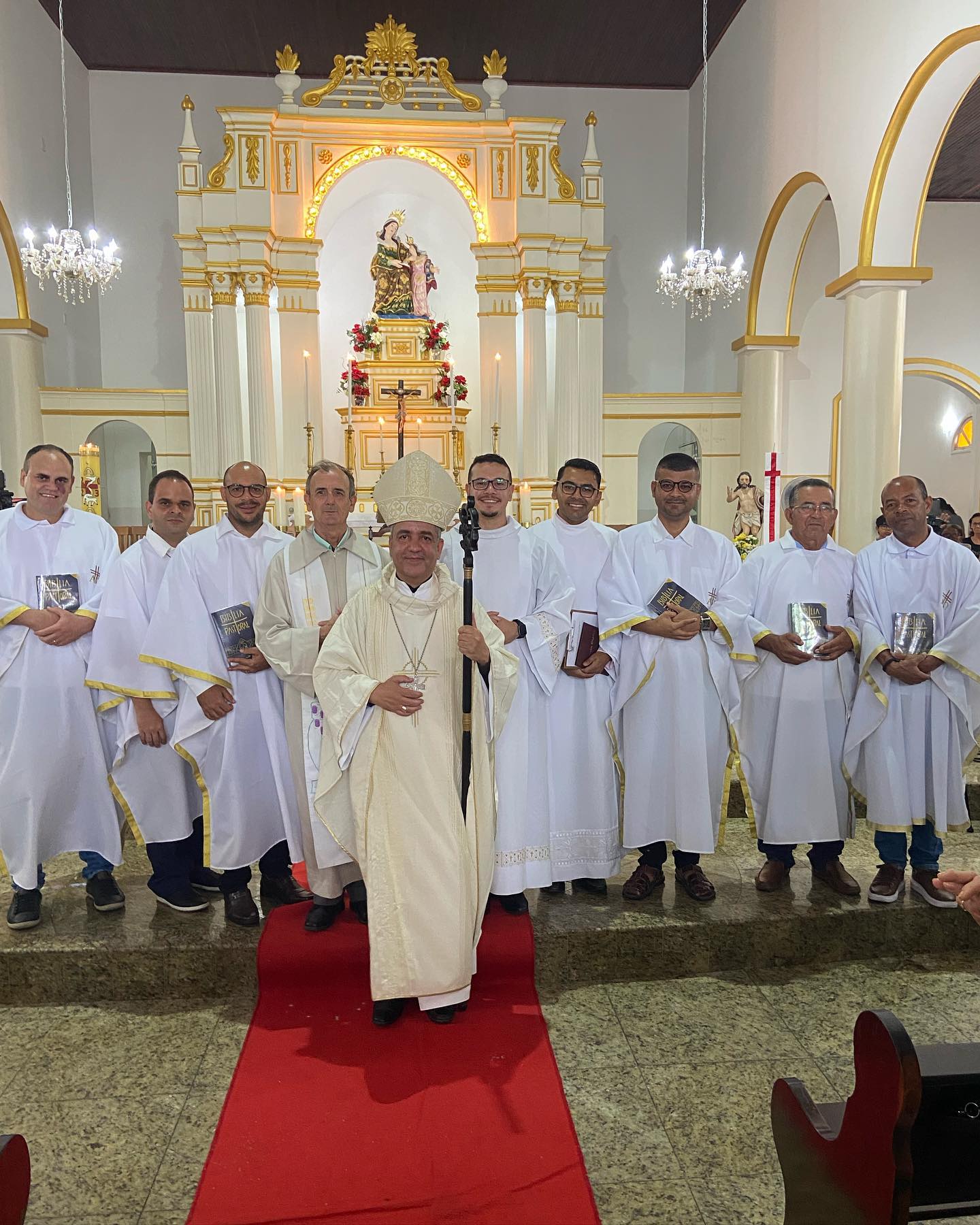 No último domingo, dia 07, na Paróquia Nossa Senhora Santana, em Ipirá, os candidatos ao Diaconato Permanente da Escola Diaconal Papa Francisco, Adalbério Santos, Agnaldo Santos, Bruno Serra, Cláudio Santana, Djalma de Oliveira e Tobias Santana, receberam a instituição do Ministério do Leitorato(Leitores).