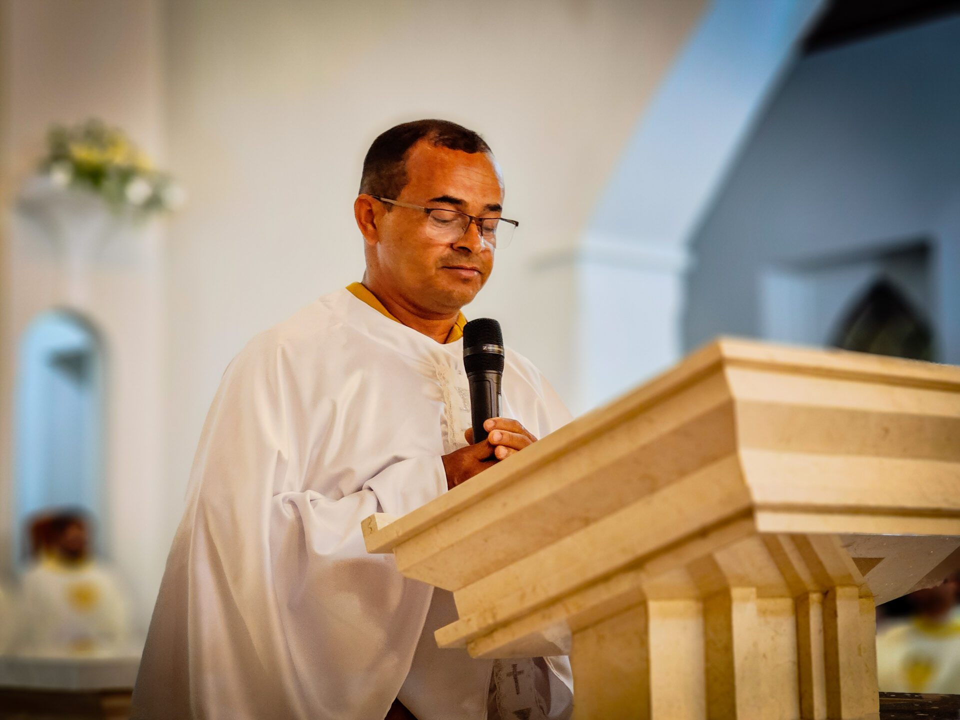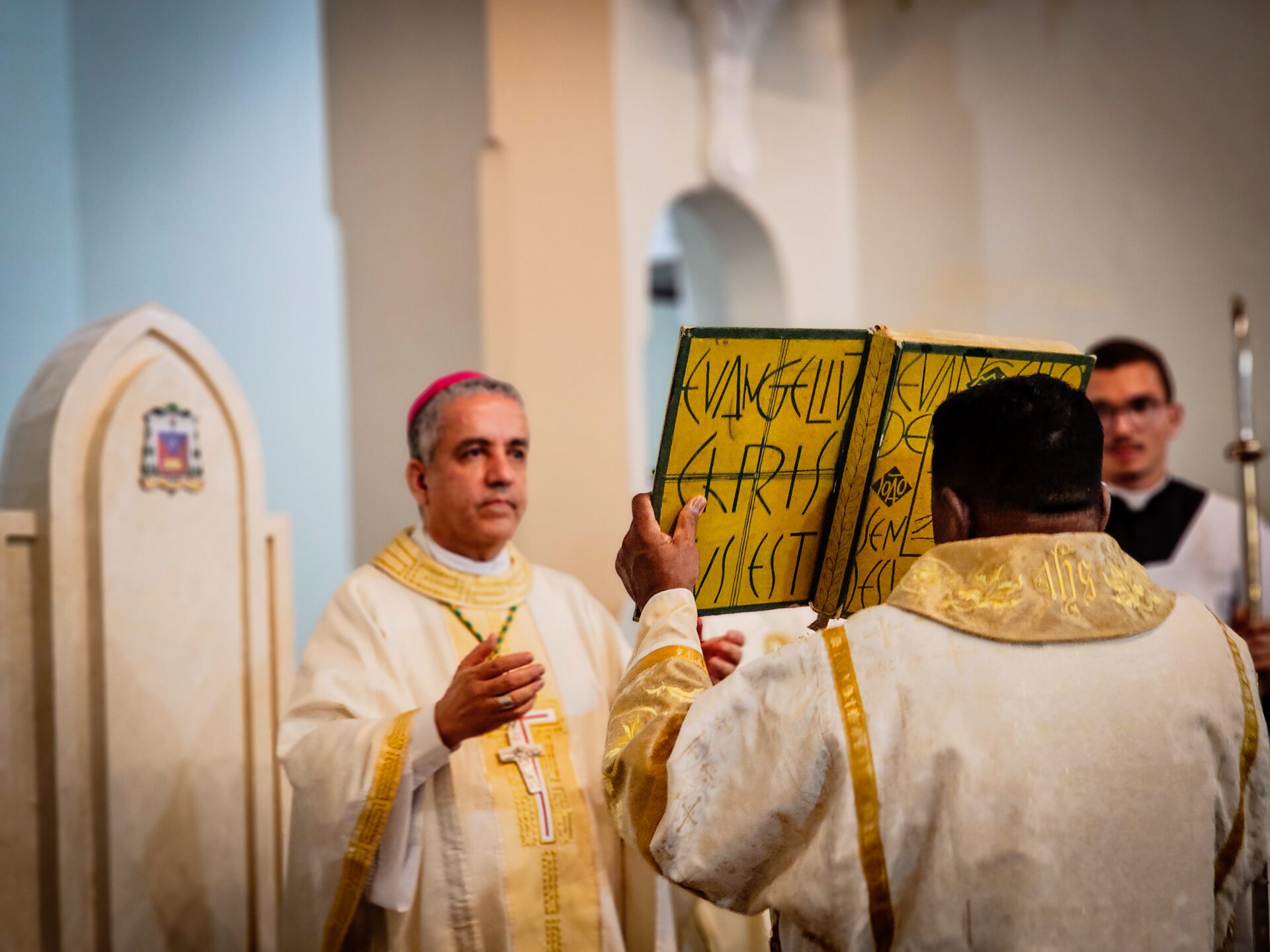 A primeira leitura, do livro de Neemias, se encaixa providencialmente com outro gesto desta celebração: a bênção do novo ambão da Palavra. No tempo de Neemias, o povo se reuniu, ouviu a Lei de Deus e respondeu com um “Amém” profundo. A Palavra emocionava, curava, educava. O ambão é o lugar elevado de onde Deus nos fala hoje.