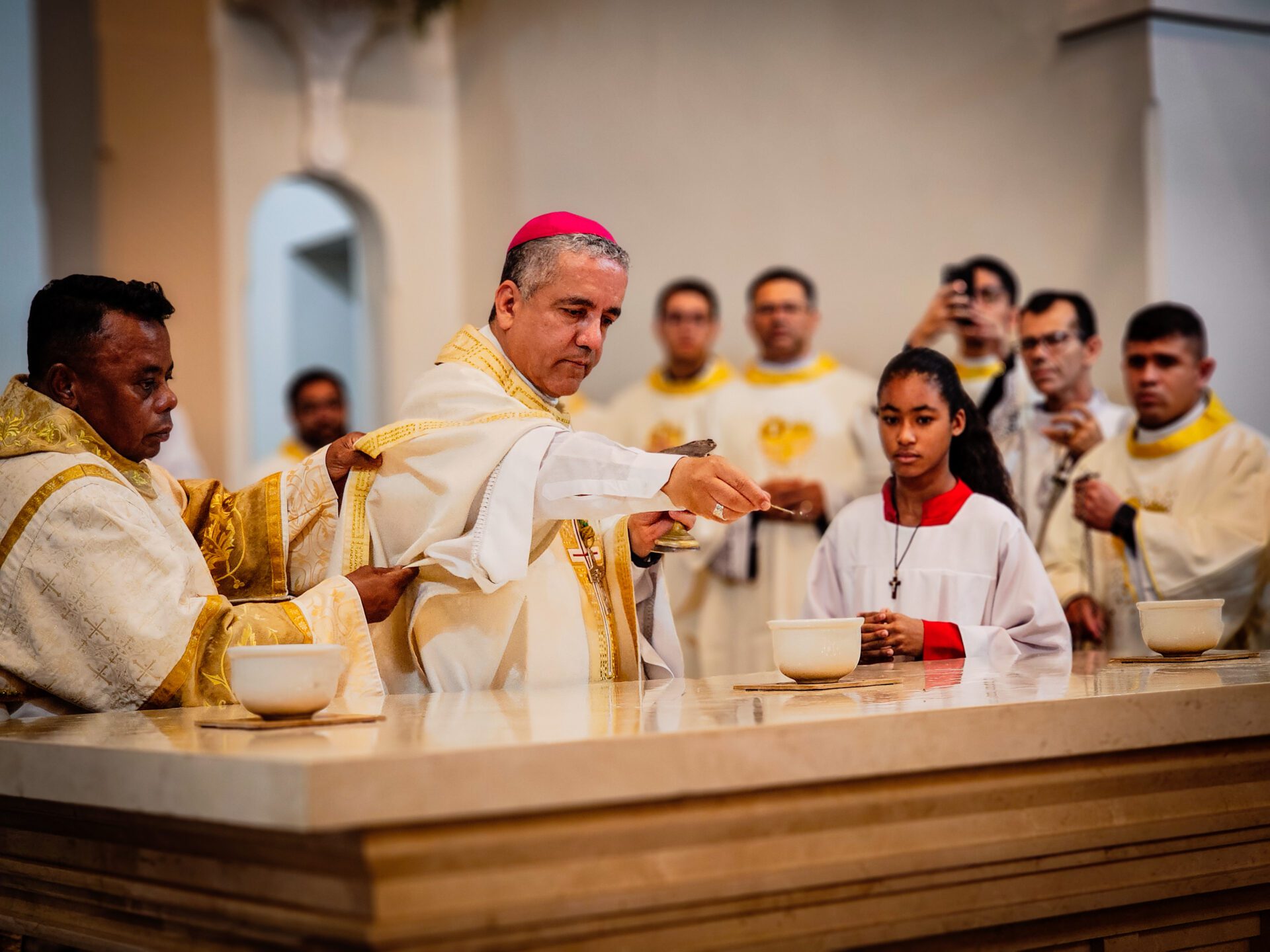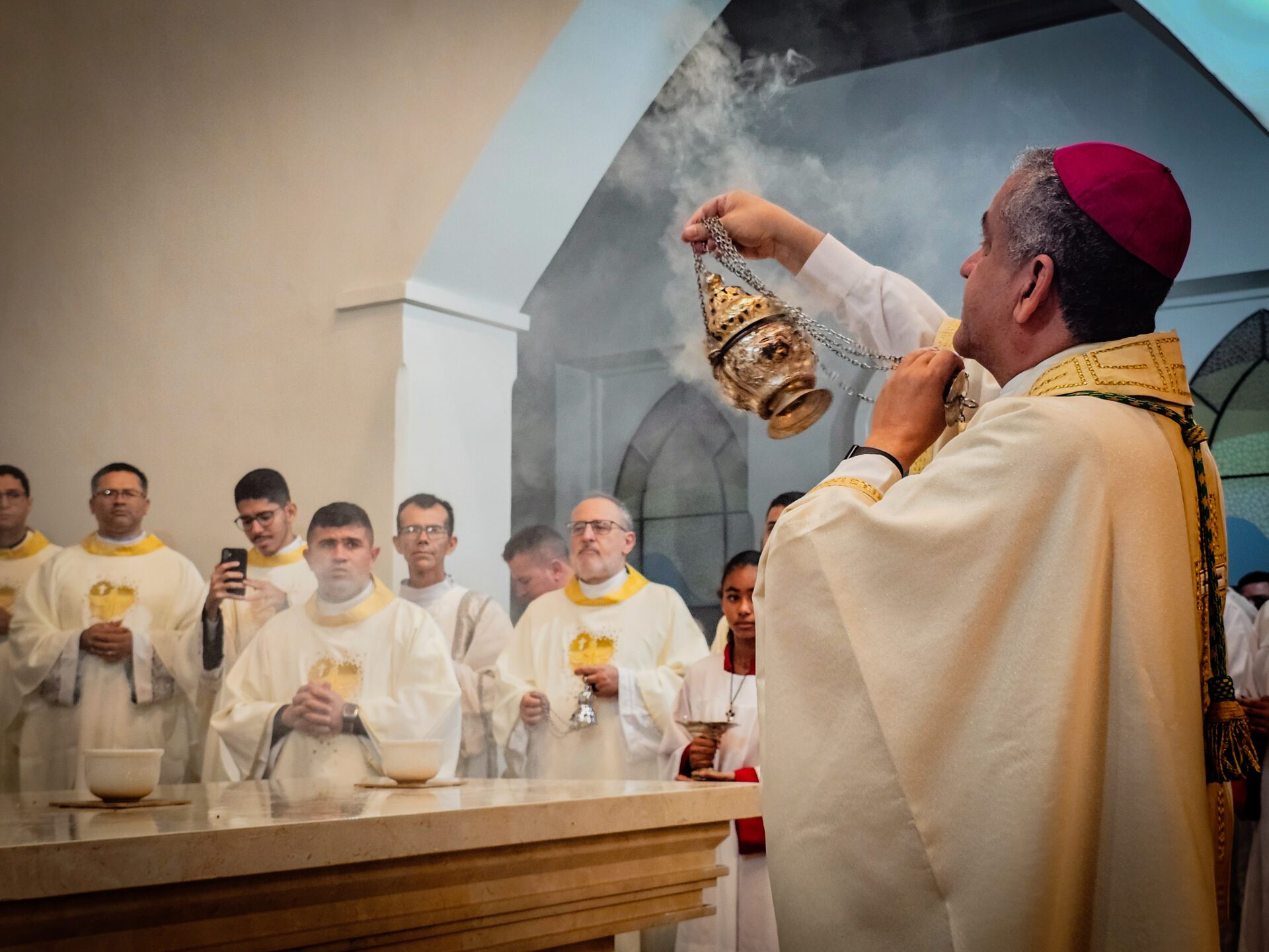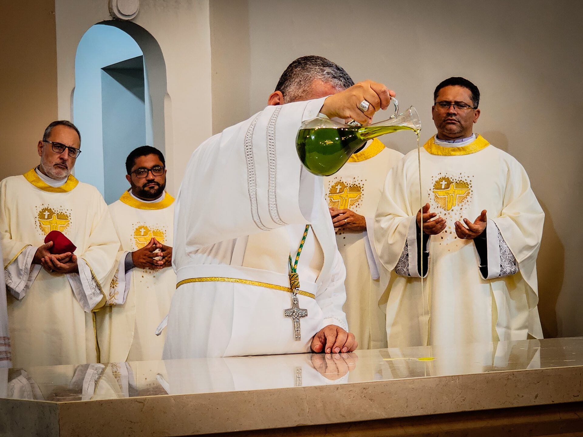 Jesus, o Cordeiro definitivo, também escolheu um altar. Na mesa alta da Última Ceia, entregou-nos o seu Corpo e Sangue. Daquela mesa até a cruz, tudo estava unido: a Ceia e o Calvário são uma só entrega. O altar cristão é, portanto, ao mesmo tempo mesa do banquete e altar do sacrifício. Por isso, ele ocupa o centro de nossa Catedral, e será hoje ungido com o santo Crisma, como sinal de que pertence inteiramente a Cristo.
