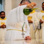 Também hoje será abençoada a nova pia batismal, fonte de onde brota a vida cristã. Aqui, renascerão crianças e adultos para Deus. Deste lugar, jorrará a água viva que nos faz filhos da Igreja. Lembremos que cada sacramento que celebramos neste altar começa espiritualmente ali, na pia batismal, onde somos mergulhados na morte e ressurreição de Cristo.