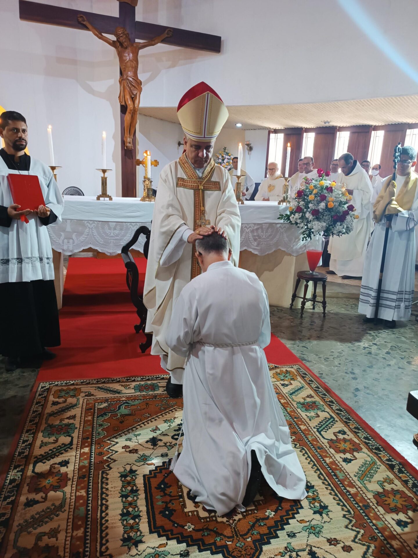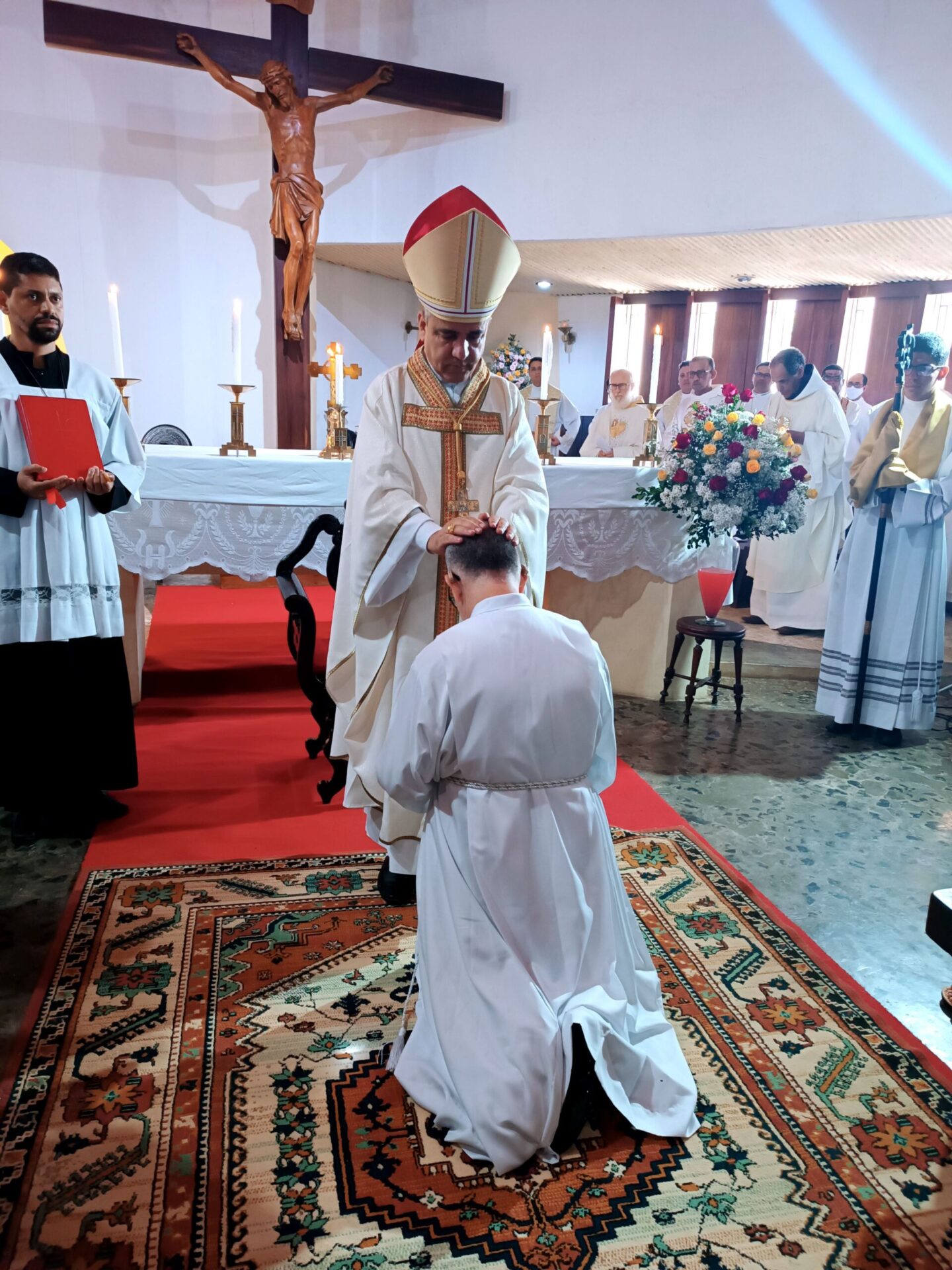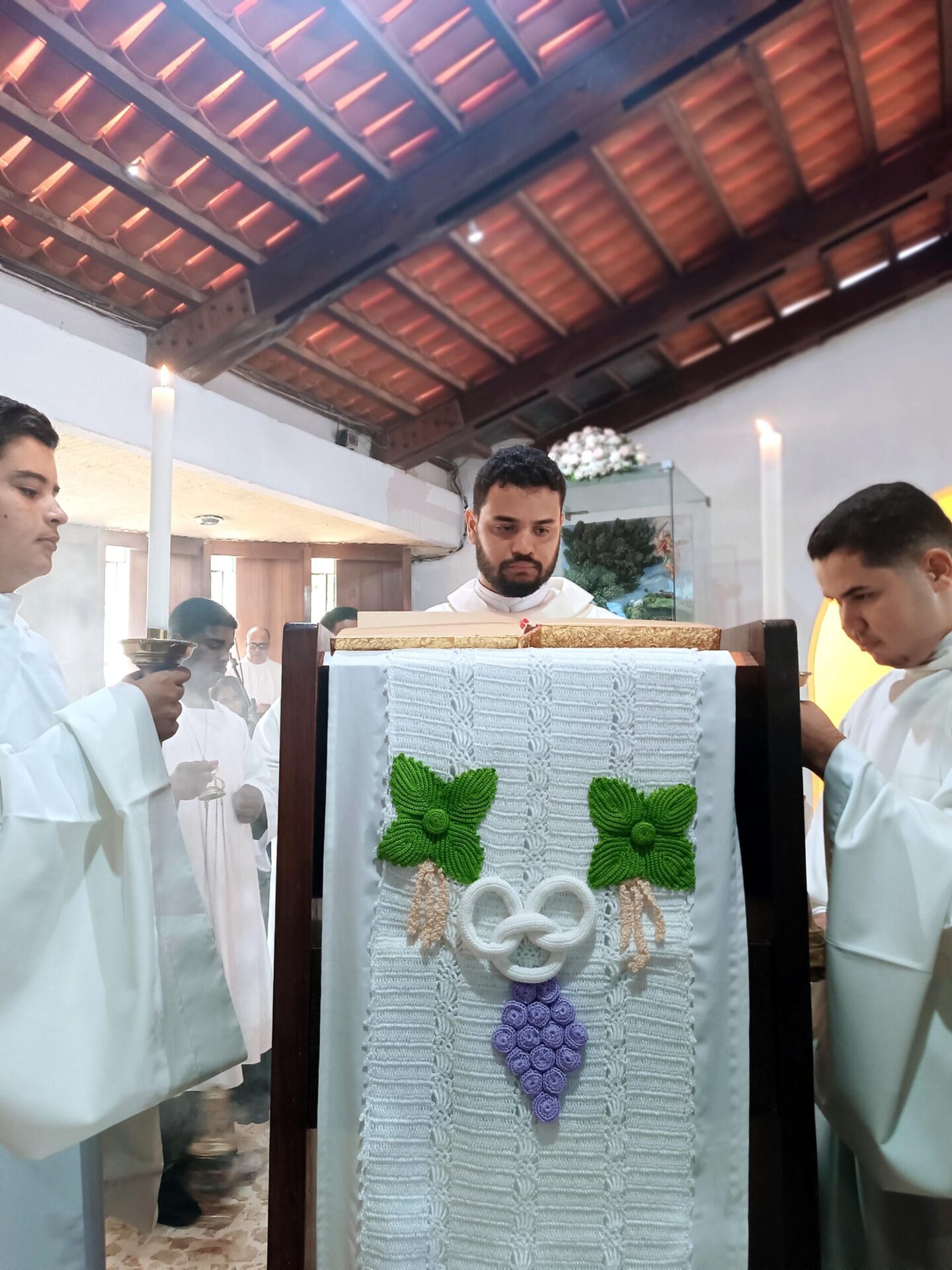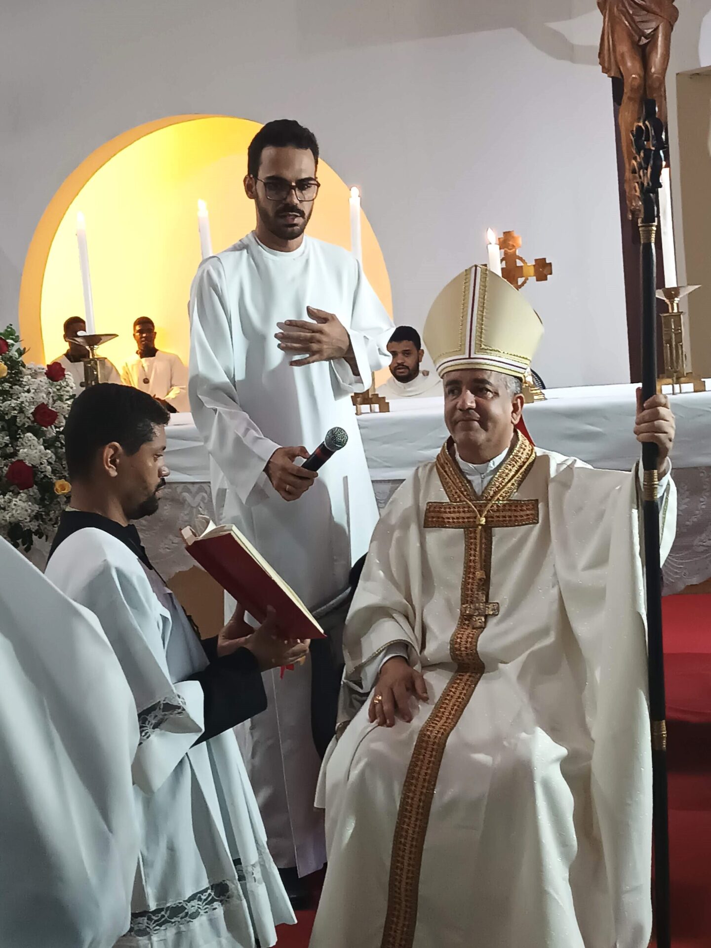 Ontem (30/04) no IV Domingo da Páscoa, Domingo do Bom Pastor, aconteceu a ordenação diaconal do Ir. Antônio Fraga, no Mosteiro da Sagrada Ordem Cisterciense, em Jequitibá, reunindo o Clero da Diocese de Ruy Barbosa, Monges do Mosteiro Cisterciense, religiosas(os), seminaristas, paroquianos da Paróquia Nossa Senhora Mãe do Divino Pastor e leigos(as) das demais paróquias da Diocese de Ruy Barbosa.