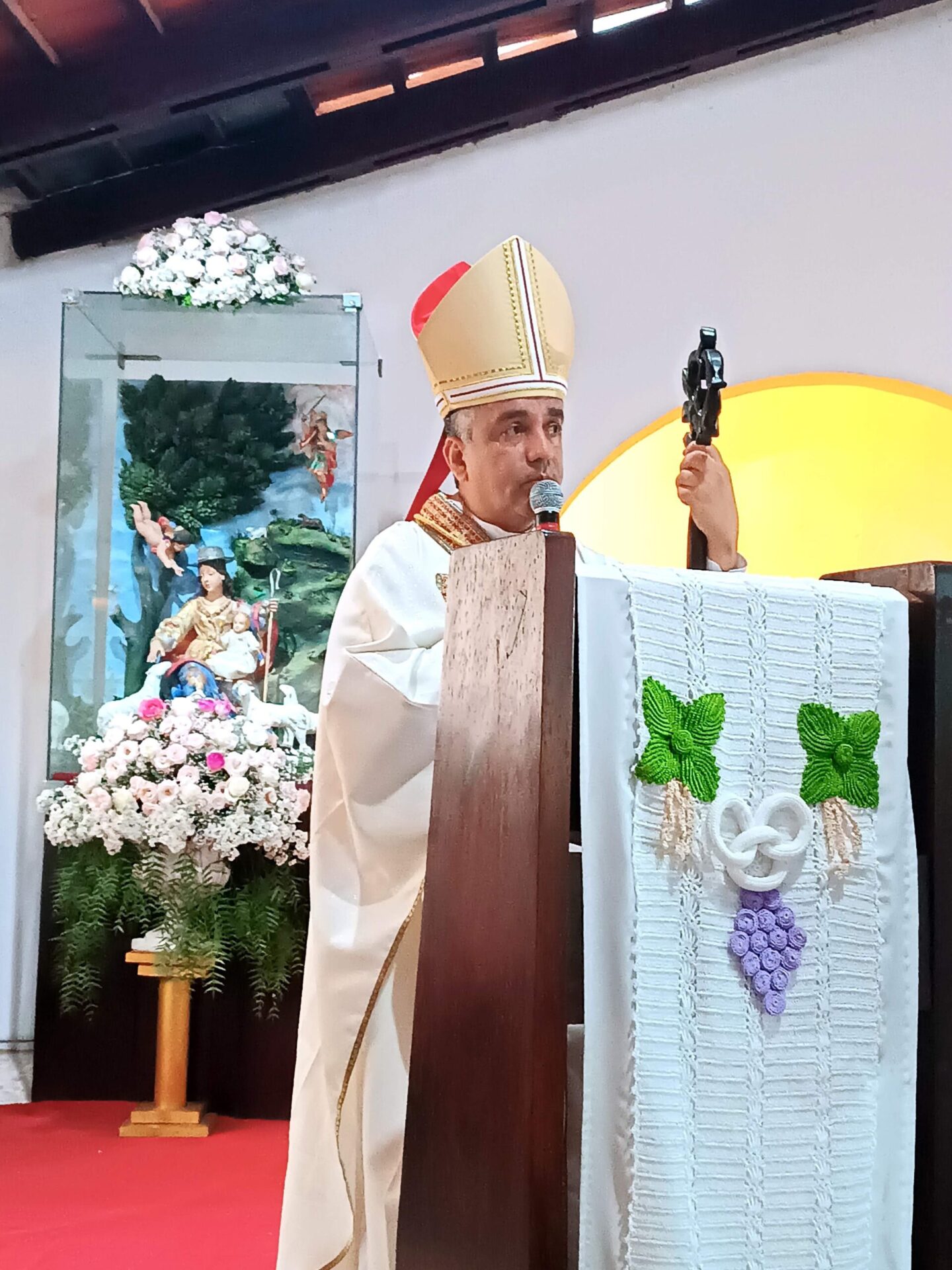 A Celebração Eucarística foi presidida pelo Bispo Diocesano, Dom Estevam, que em sua homilia relembrou a páscoa definitiva de Dom André e do Monsenhor Frans, ressaltando a alegria de está, no Domingo do Bom Pastor, celebrando uma Ordenação Diaconal.