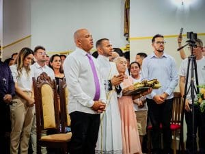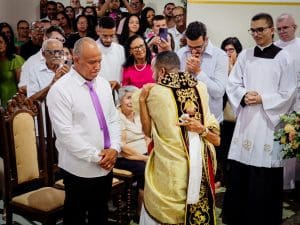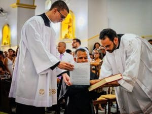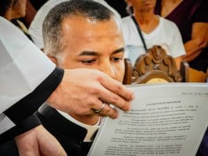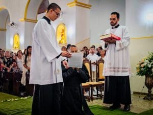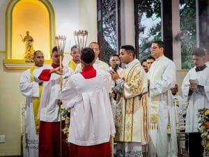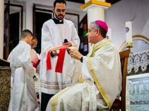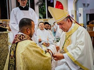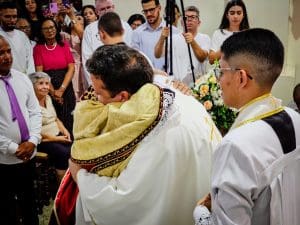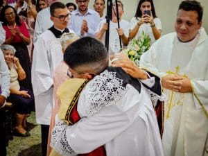Ao concluir, Dom Estevam afirmou: “Querido diácono Reginaldo, daqui a pouco Pe. Reginaldo, ao receber a ordenação sacerdotal, sinta essa sedução do Senhor. Deixe-se atrair perpetuamente pelo perfume de Cristo, que o consagra, o aproxima do povo e o faz servidor. E que, a cada dia de seu sacerdócio, você seja um perfume de amor, compaixão e misericórdia, deixando um rastro de esperança e paz onde quer que vá. Lembre-se sempre que o ministério sacerdotal não é trono, mas lava-pés.”