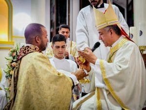No Evangelho de hoje (Jo 15,9-17), Jesus nos chama a amar como Ele amou, a ponto de dar a vida. Este é o perfume mais precioso que o sacerdote pode carregar: o amor de Cristo, que gera proximidade e impulsiona ao serviço. O sacerdote é aquele que, ao deixar-se seduzir por esse amor, entrega sua vida como verdadeiro amigo de Cristo, buscando sempre servir e não ser servido. Reginaldo, o Senhor hoje o convida a ser amigo de Cristo no mundo e a carregar esse amor em cada ato de seu ministério. Que esse amor seja renovado todos os dias na sua amizade com Ele, e que, inspirado por essa entrega, você possa ser um sinal de esperança para Deus, para o bispo, para o presbitério e para o povo.