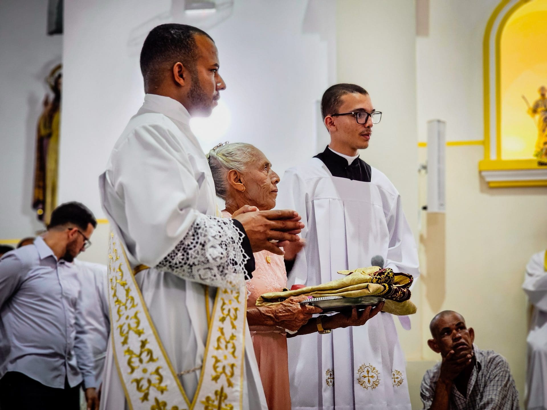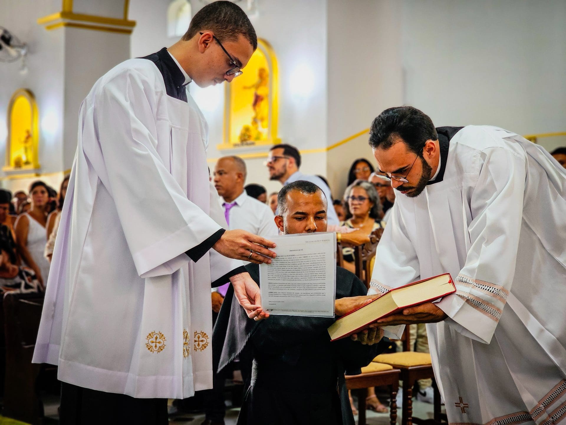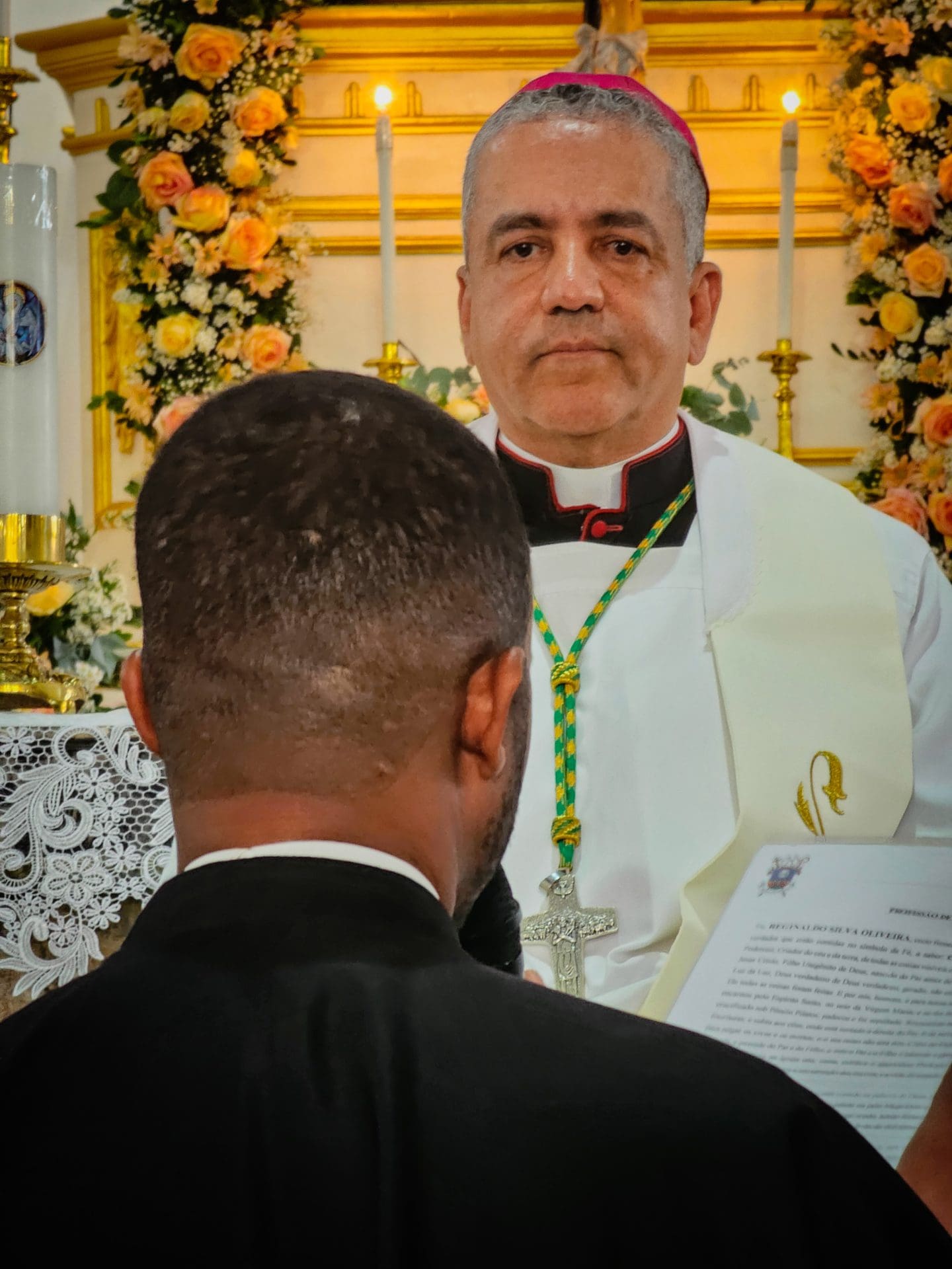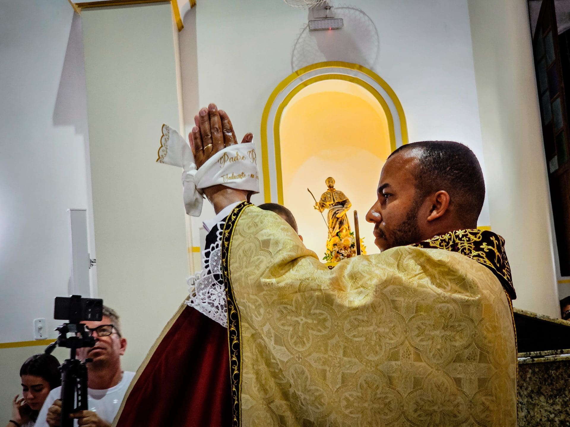 A imposição das mãos e a oração consecratória são momentos centrais da ordenação, que remontam aos Apóstolos. Este ato representa a transmissão do ministério apostólico e a missão que o sacerdote assume de ser um instrumento da graça e do amor de Deus no mundo. Reginaldo, ao receber a imposição das mãos com a oração de consagração, torna-se um sinal vivo do amor de Cristo. Que o Espírito o fortaleça e capacite a estar próximo das pessoas, mostrando-lhes o rosto misericordioso e compassivo de Deus.