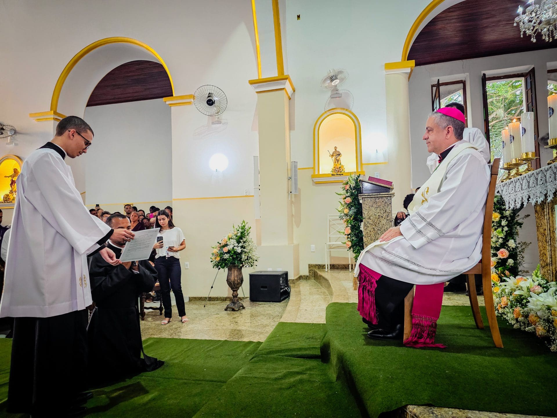 Ao concluir, Dom Estevam afirmou: “Querido diácono Reginaldo, daqui a pouco Pe. Reginaldo, ao receber a ordenação sacerdotal, sinta essa sedução do Senhor. Deixe-se atrair perpetuamente pelo perfume de Cristo, que o consagra, o aproxima do povo e o faz servidor. E que, a cada dia de seu sacerdócio, você seja um perfume de amor, compaixão e misericórdia, deixando um rastro de esperança e paz onde quer que vá. Lembre-se sempre que o ministério sacerdotal não é trono, mas lava-pés.”