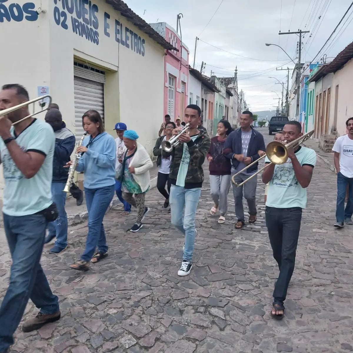 O dia iniciou com a alvorada pelas ruas da cidade e a tarde a Santa Missa seguida da procissão.
