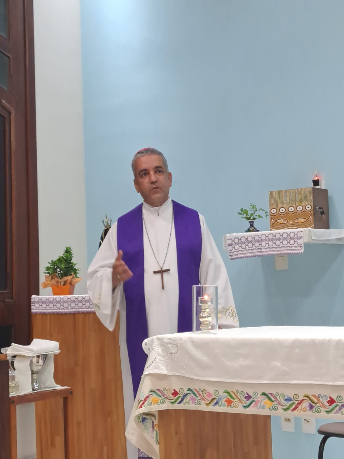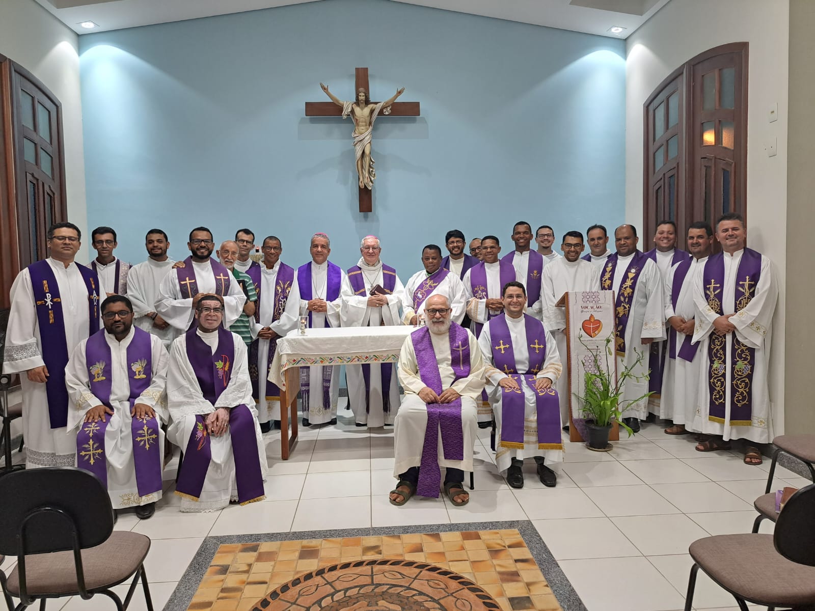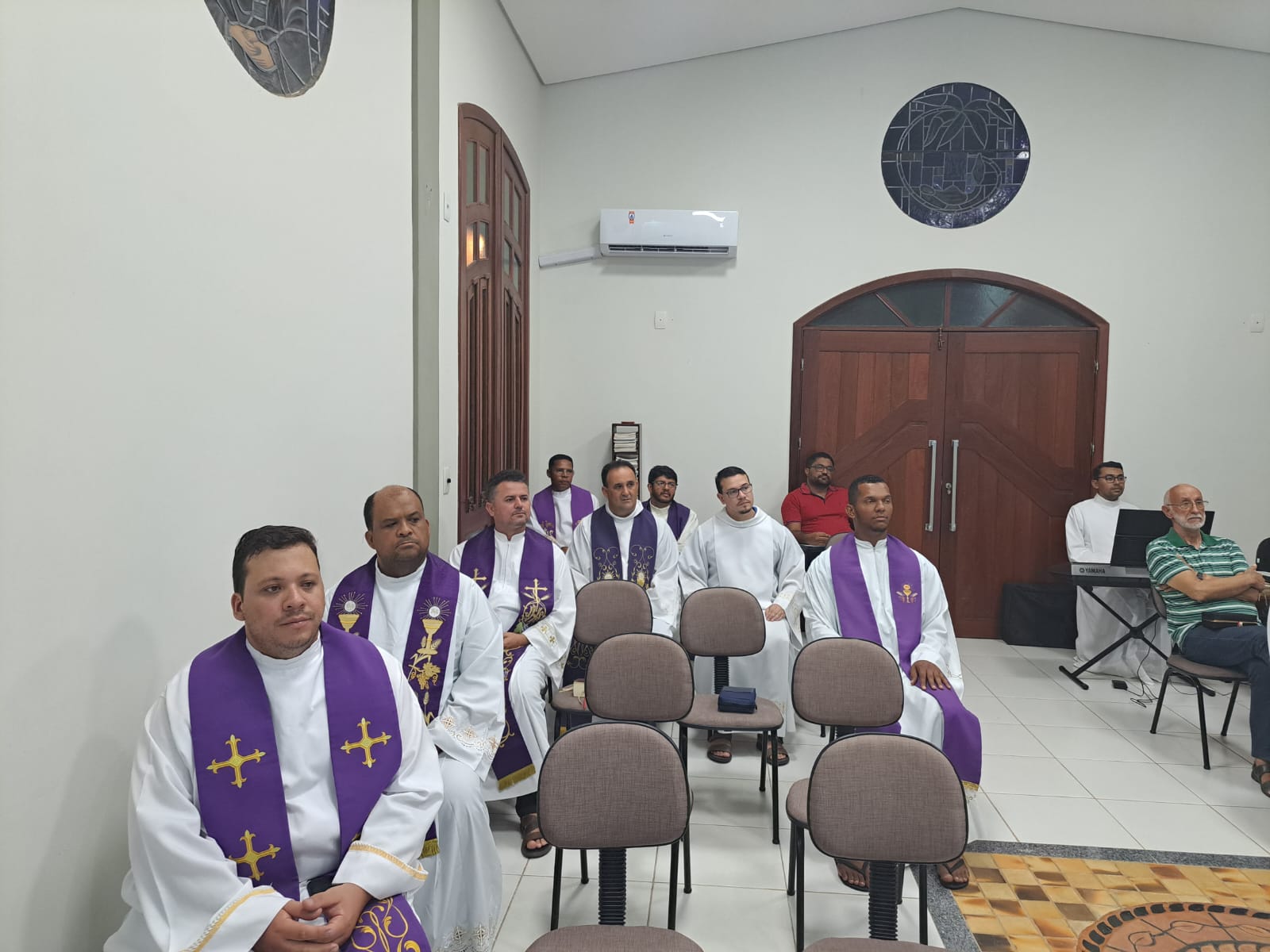 Estavam presentes o bispo, os padres, diáconos e os seminaristas em estágio pastoral da nossa Diocese.
