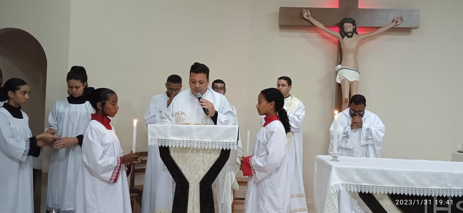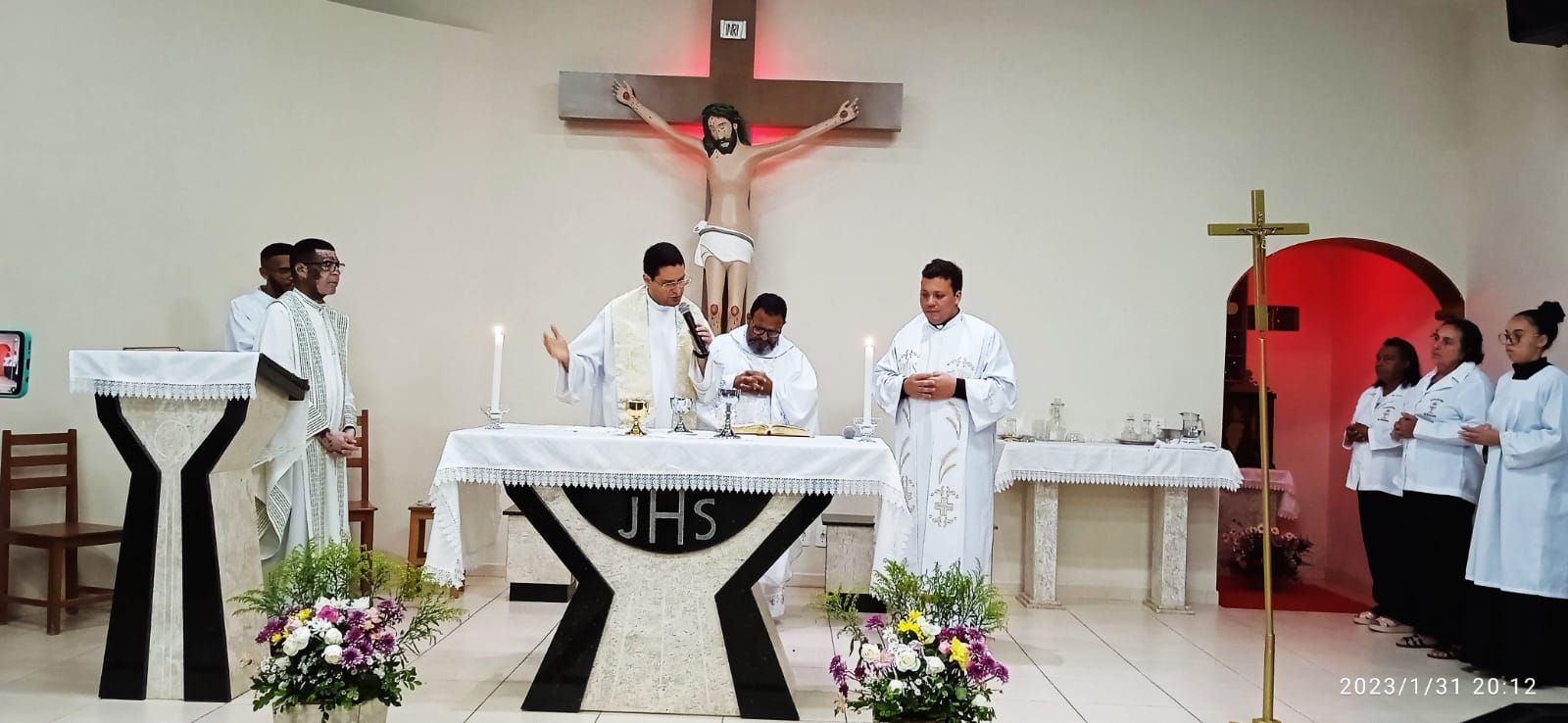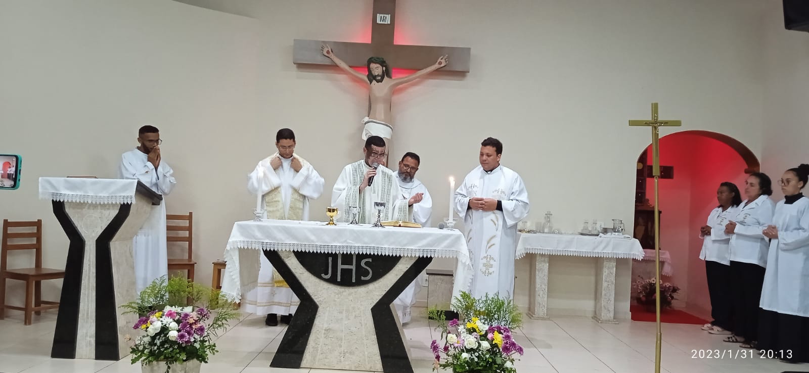 A Missa foi concelebrada pelos Padres Cláudio, Ednaldo e Fred e demais paroquianos.