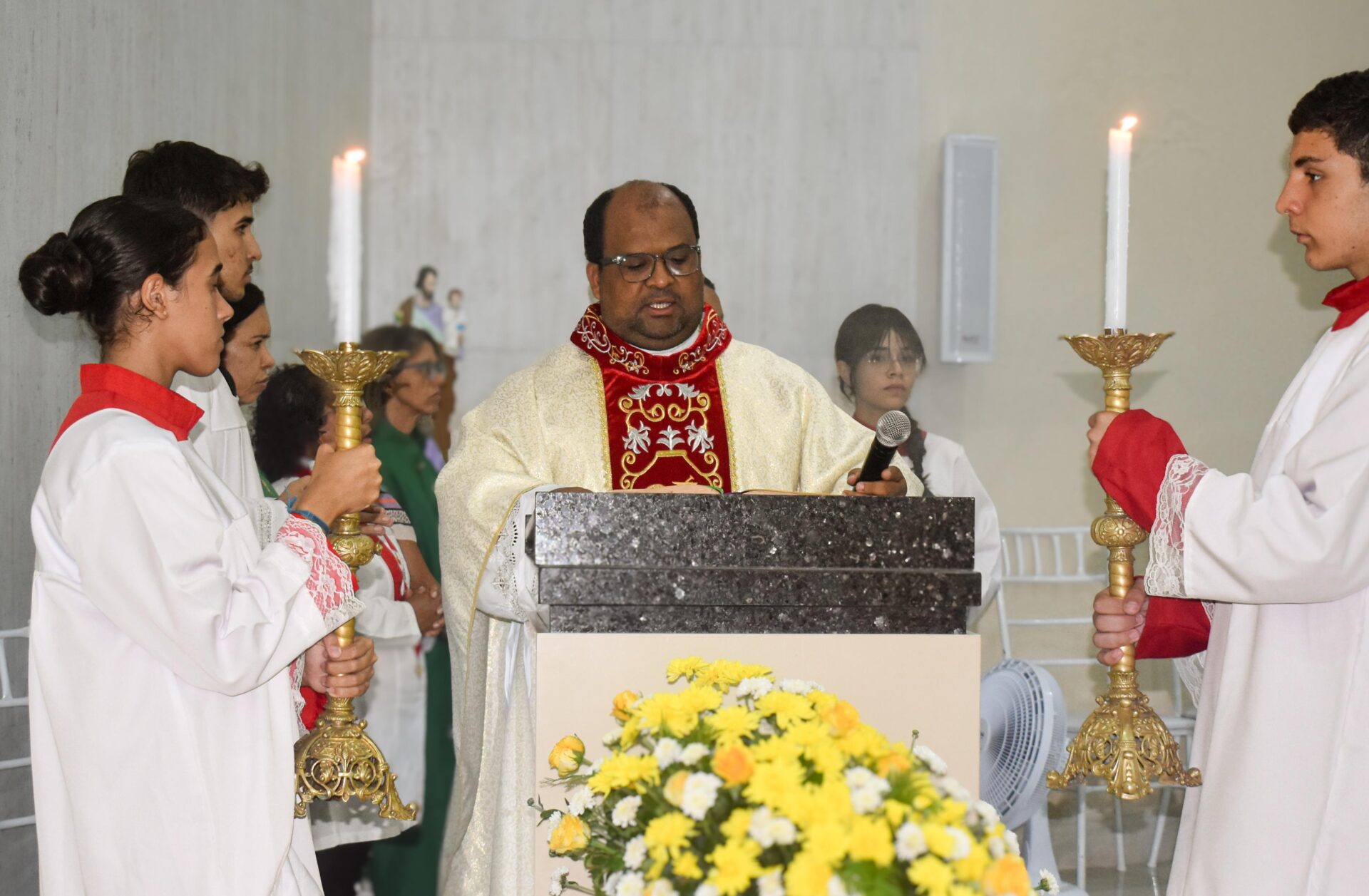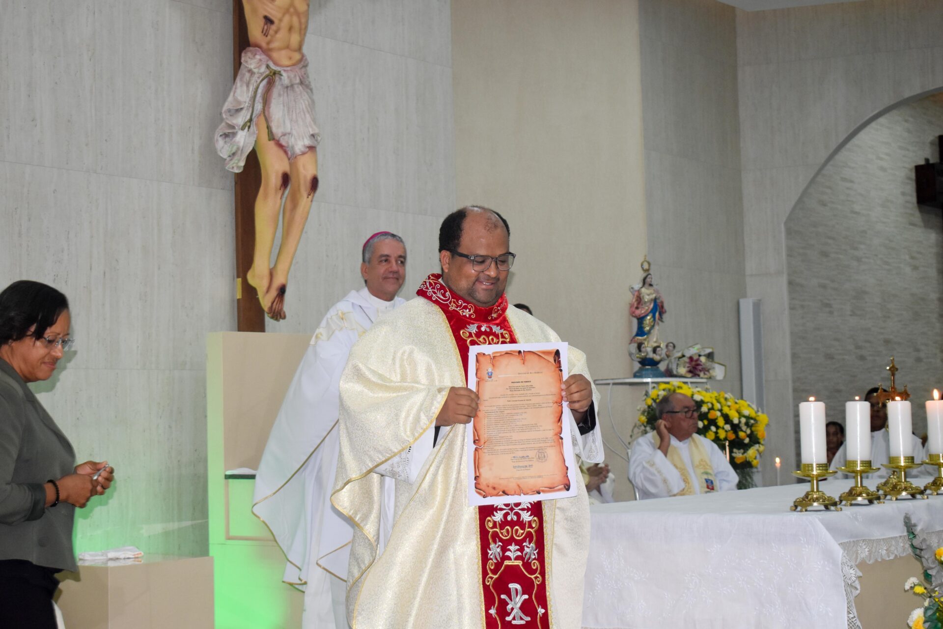 A Celebração Eucarística, com o Rito de Posse Canônica, foi presidida pelo bispo diocesano, Dom Estevam, e concelebrada por outros padres presentes, na ocasião o Pe. Cláudio Gonçalves recebeu o título de Vigário Forâneo da Forania Santa Dulce dos Pobres.