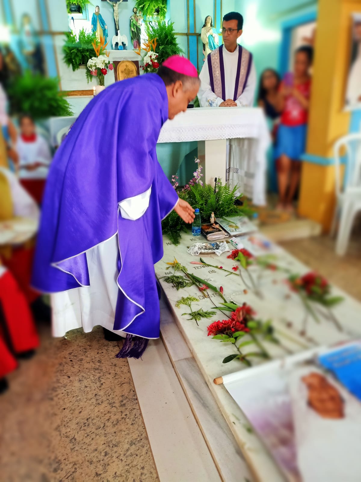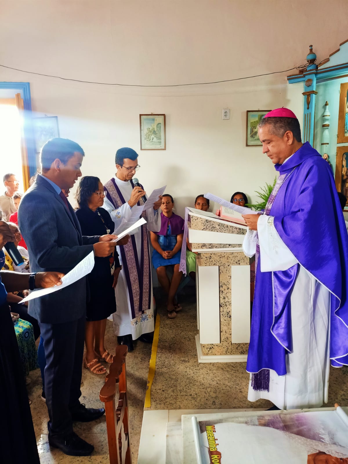 Neste domingo(26/03), quinto domingo da quaresma, o bispo diocesano, dom Estevam, celebrou a Missa no povoado de Alagoas, onde foram empossados os membros da Comissão Episcopal, presidida pelo padre Ronival Batista, nomeado como reitor interino do futuro Santuário Diocesano Nossa Senhora das Graças de Alagoas, a Ir. Silvana Sampaio Gomes, como ecônoma, a Ir. Geisa dos Santos e a missionária Claudia Conceição dos Santos, responsáveis pela comissão histórica que realizará os registros das testemunhas oculares dos que viveram com Maria Milza, para uma futura causa de beatificação, e o Dr. Rafael Brito Silva, Procurador Jurídico da Diocese de Ruy Barbosa, presente na comunidade de Alagoas.