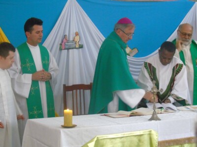 A Assembleia diocesana de Pastoral terminou com a celebração da Eucaristia presidida pelo Sr. Bispo Dom André de Witte, onde os seminaristas Claudio e Fred receberam o acolitato, seguida do almoço e com a Benção de Deus pela proteção e realização das Prioridades para o Bem viver de todas as pessoas e seres criados por Deus.