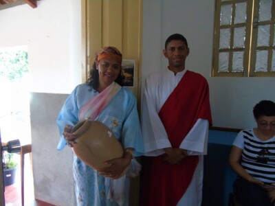 Leonilda da Cruz e Silva, é Irmã da Congregação das Irmãs do Divino Salvador, trabalha na Paróquia de Várzea do Poço – Ruy Barbosa – levou a assembléia a refletir sobre a cena bíblica do encontro de Jesus com a Samaritana. No centro da sala onde se realizou a assembléia pastoral, foi feito um ícone dessa cena bíblica. Leonilda disse que os samaritanos tiveram papel decisivo na formação da comunidade: souberam acolher em seu seio judeus expulsos de suas sinagogas e os pagãos vindos do mundo grego.