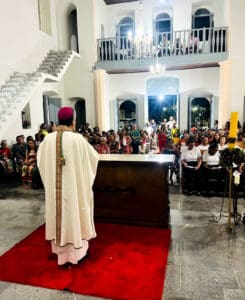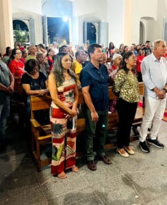 Na cerimônia de reabertura, o altar e as paredes da igreja foram abençoados com água benta, enquanto o Reverendíssimo Dom Estevam dos Santos, bispo diocesano, ungiu o altar com o óleo do Crisma, simbolizando a santificação e consagração desse espaço sagrado. Além da presença marcante dos devotos, o evento contou com a ilustre participação do prefeito municipal, Wilson Paes Cardoso, acompanhado de sua esposa Adaize Eulália, da vice-prefeita Milena Helfenstein, do presidente da Câmara de Vereadores, Edgar Paes Coelho Neto, bem como de diversos secretários municipais e outras autoridades locais.