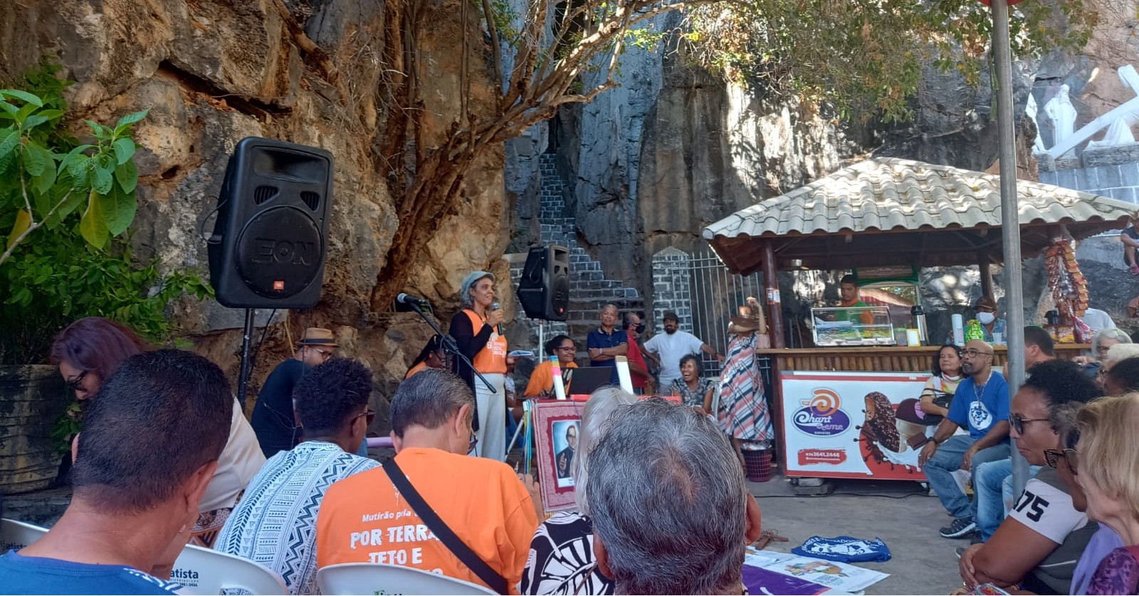 “Romaria da Terra, faz o povo se reunir, uma luta sem guerra, nós lutaremos por ti..”