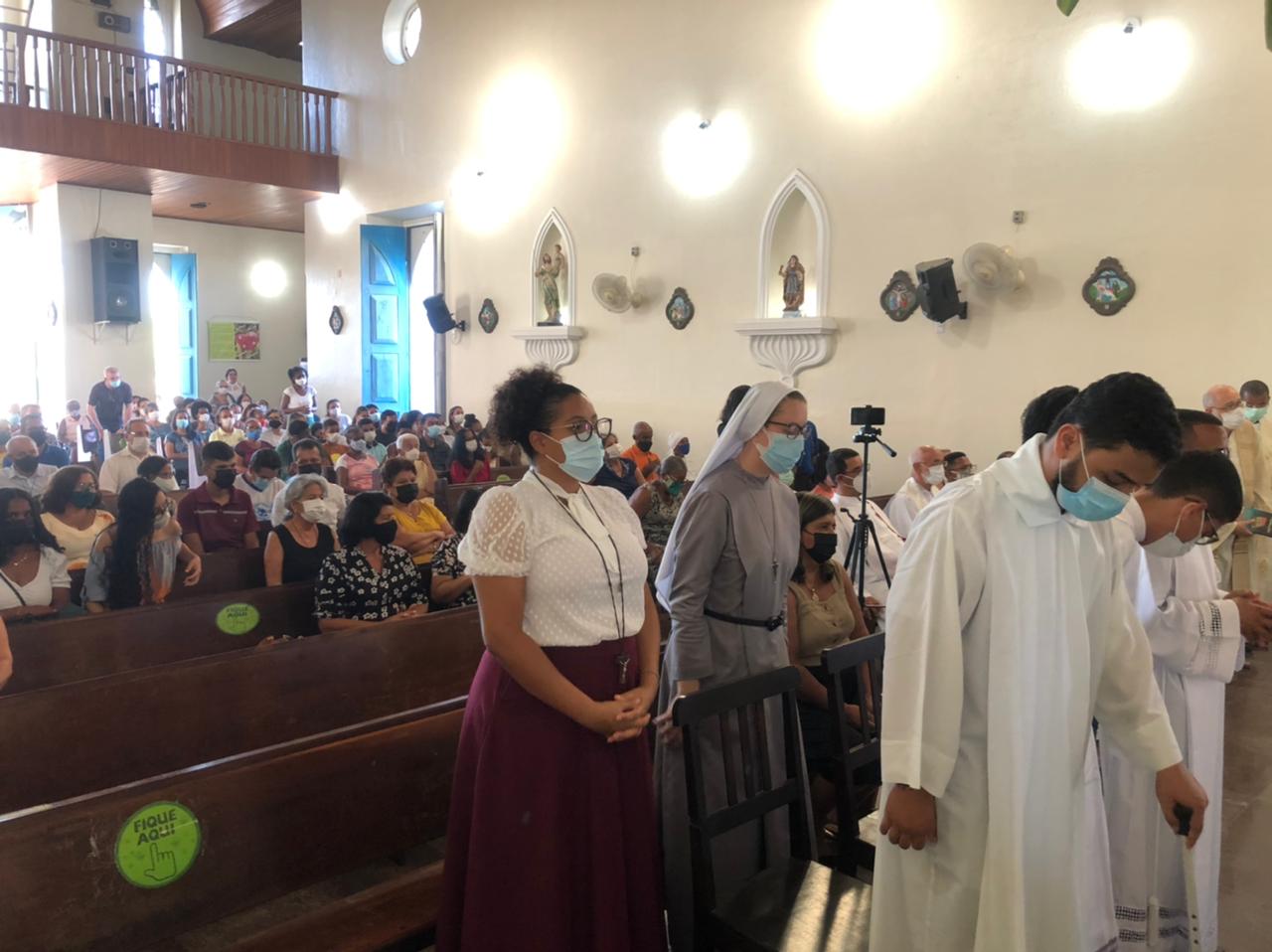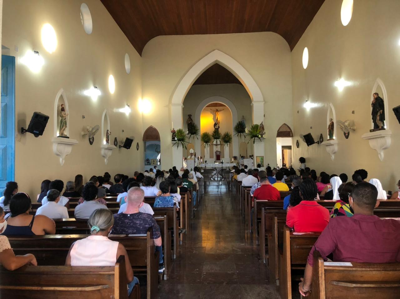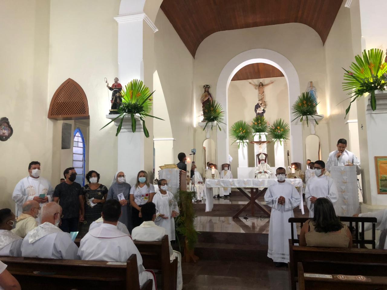 Após o momento de estudos no CTL, aconteceu a Celebração Eucarística, na Catedral Santo Antônio, com a abertura do Biênio Vocacional 2022/2023, com o tema “ Cada Comunidade uma Nova Vocação e Novos Ministérios”, a Celebração Eucarística foi presidida pelo bispo diocesano, Dom Estevam dos Santos Silva Filho, que em sua homilia falou da importância de sermos testemunhas da paz no mundo, lembrou a Páscoa de Dom André de Witte, que no dia 25 de abril completará 1 ano, e da importância de sermos uma Igreja sinodal portadores da misericórdia divina.