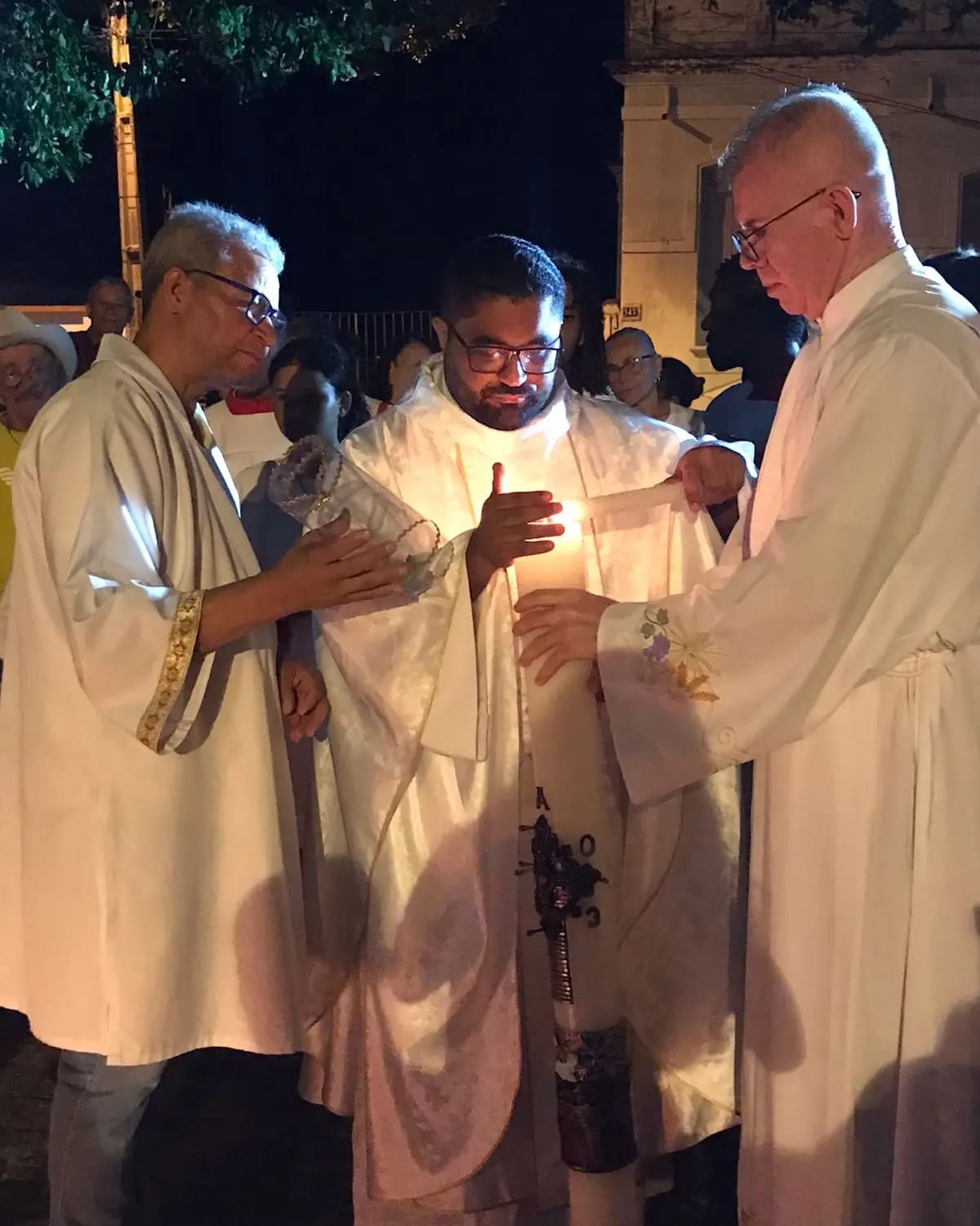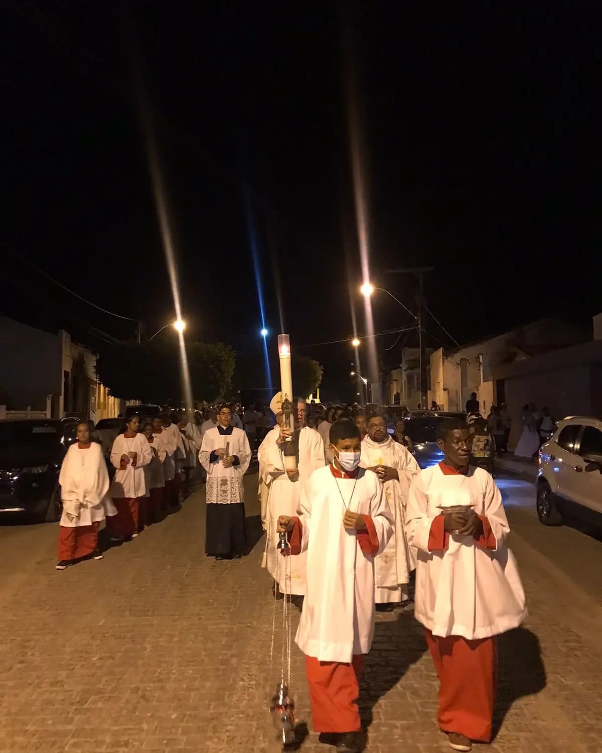 Na noite do Sábado Santo (08/04), às 19h, em frente a Creche Municipal Maria de Lourdes, o povo de Deus participou da Benção do Fogo Santo, realizada pelo bispo diocesano, Dom Estevam dos Santos, e pelo vigário geral diocesano e pároco da Paróquia Catedral Santo Antônio, padre Erivaldo Gomes, em conjunto com o cerimoniário da solenidade e toda a equipe litúrgica.
