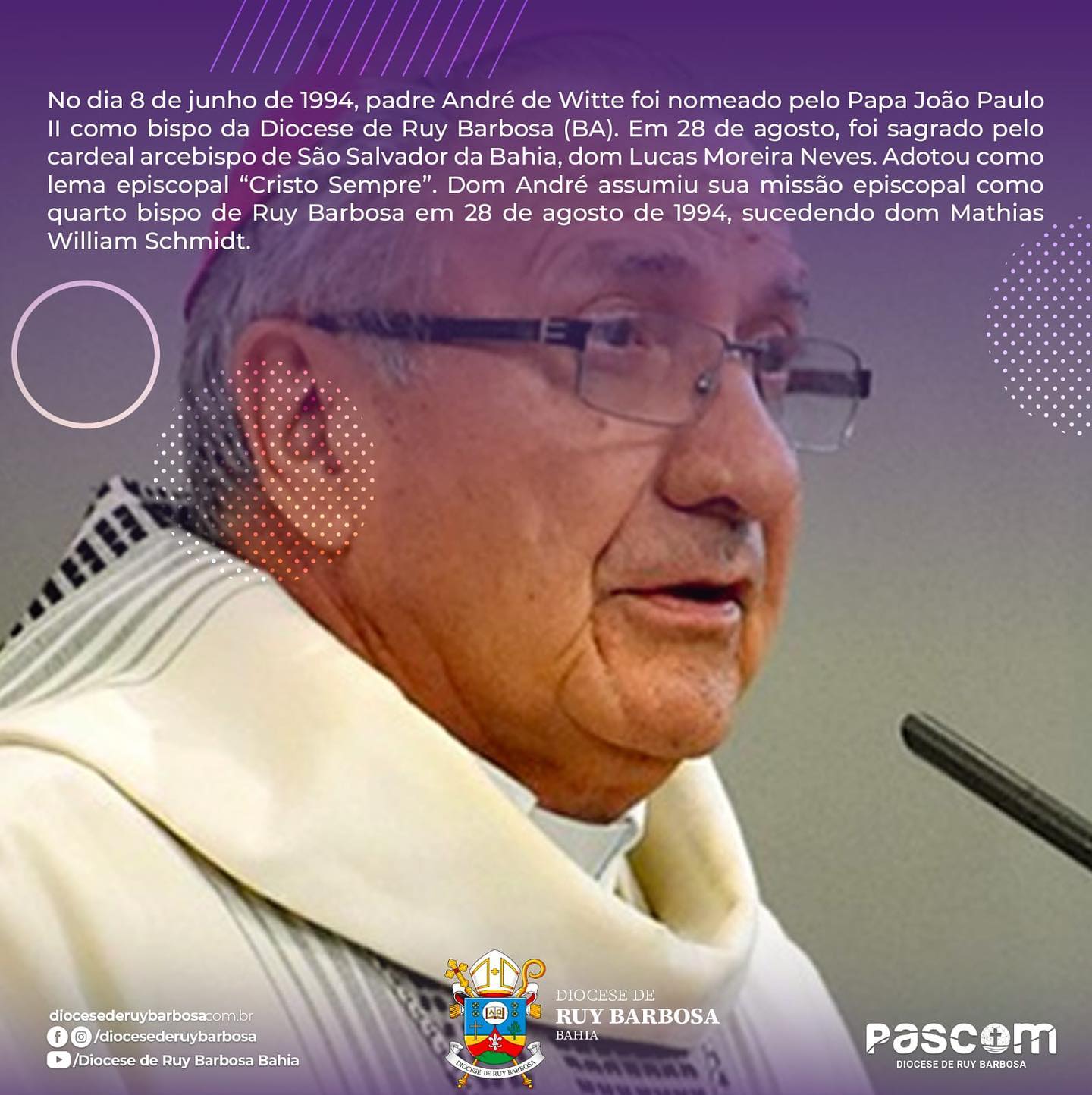 Dom André serviu por mais de 26 anos a nossa amada Diocese de Ruy Barbosa, e partiu para a casa do Pai no Domingo do Bom Pastor, em 2021.